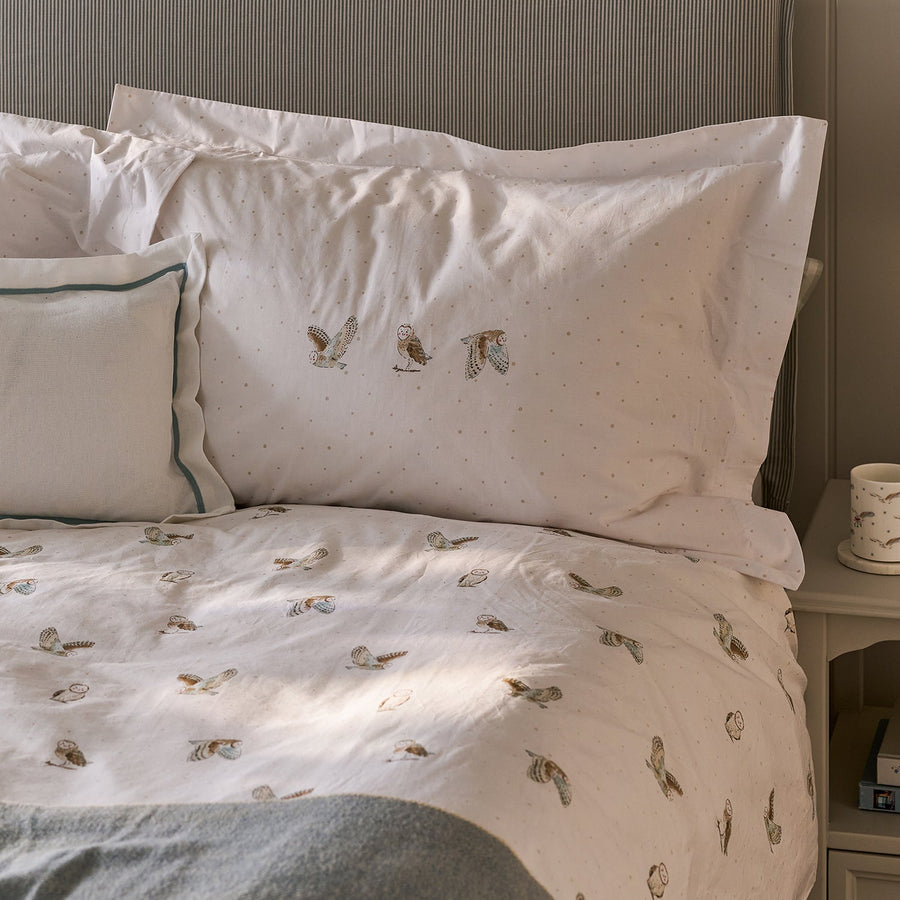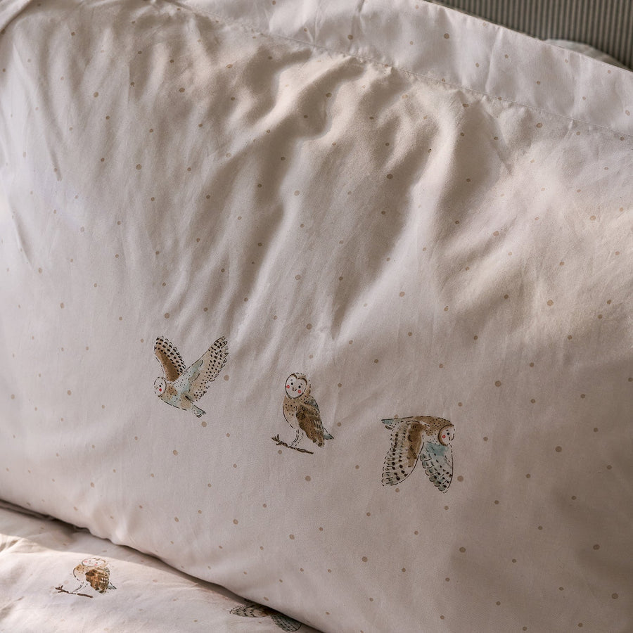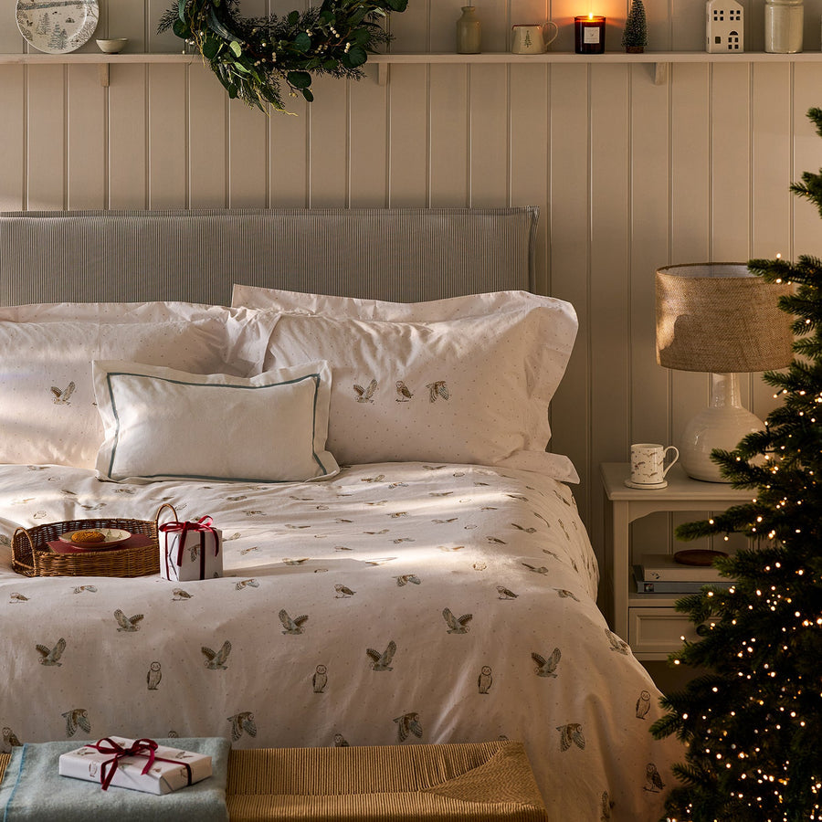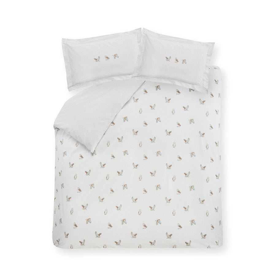 Add seasonal charm to your bedroom with our Snowy Owls Bedding Set, inspired by the quiet beauty of winter, featuring Sophie’s illustrations of graceful owls gliding through the snowy sky and perched on branches. Set against a white background, this timeless bedding set brings a serene and cosy feel to your bedroom, perfect for the colder winter months. The reverse features a snowy background ideal for creating a calm and inviting winter retreat. Crafted from 100% cotton 200tc for breathability and comfort.