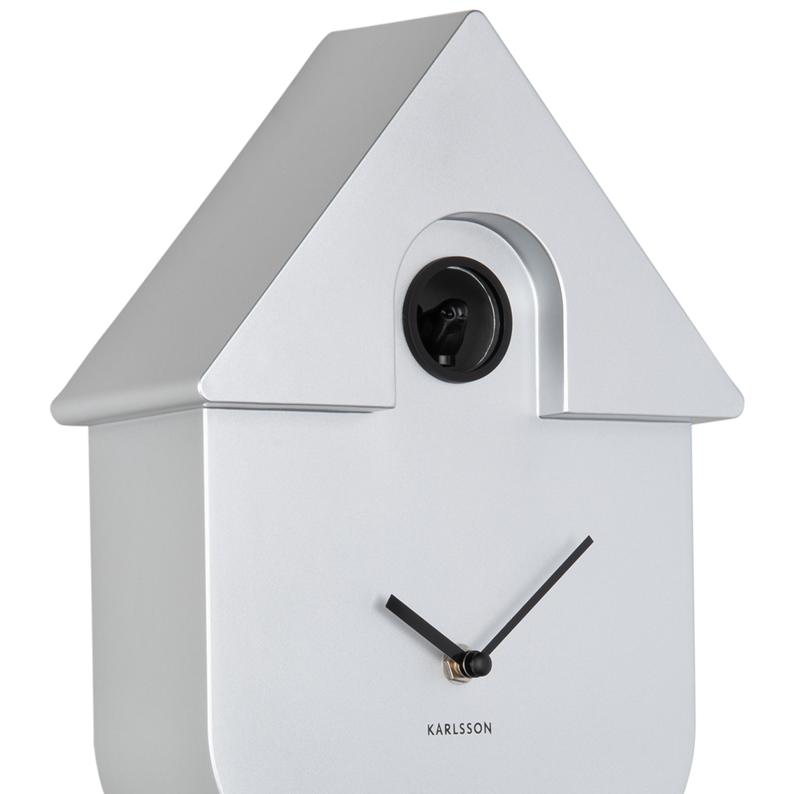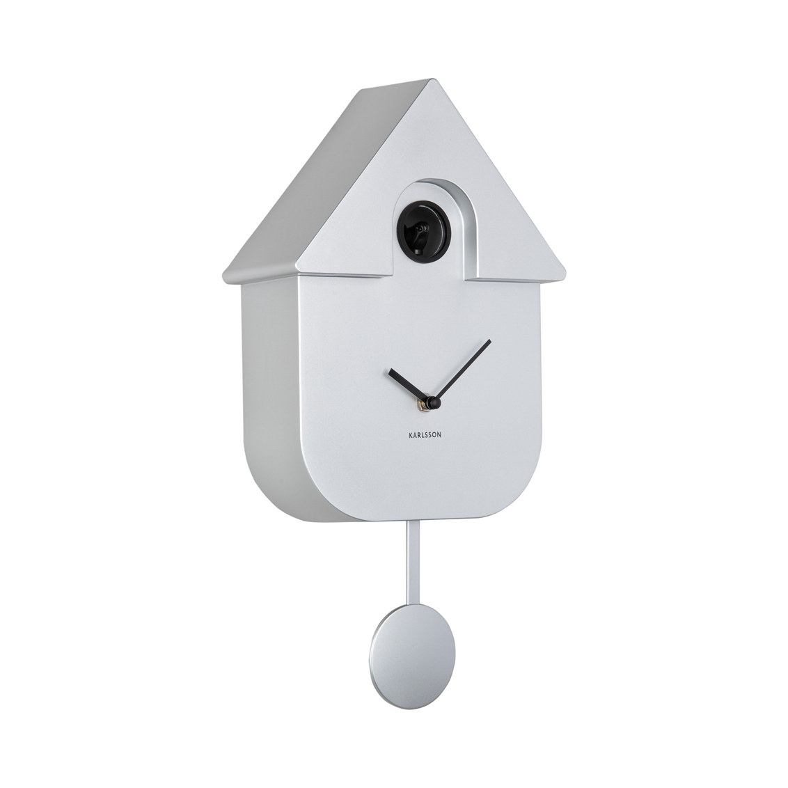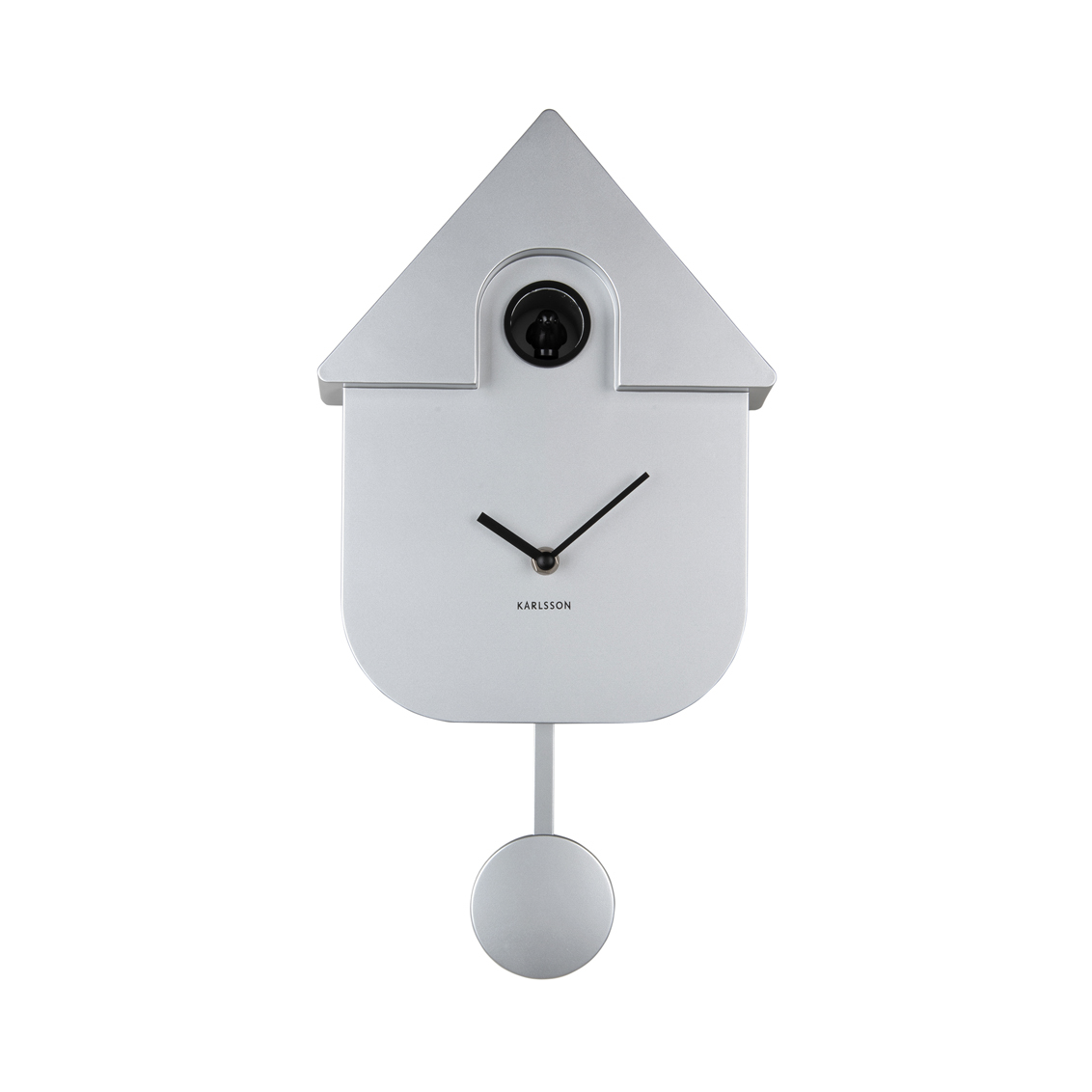 Karlsson Modern Cuckoo Wall Clock in Metallic Silver