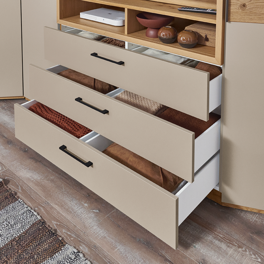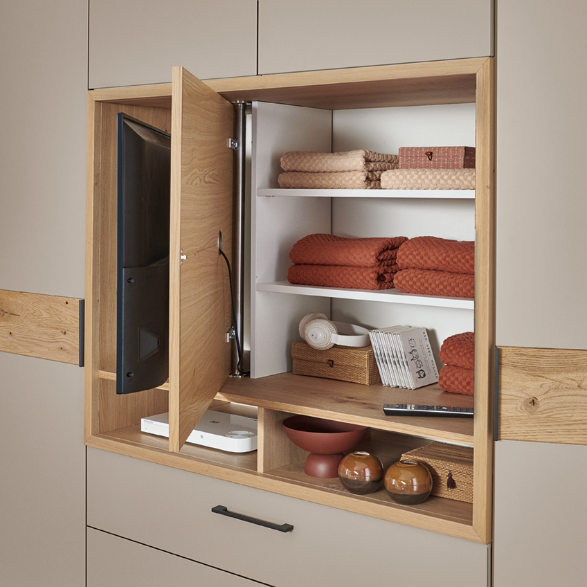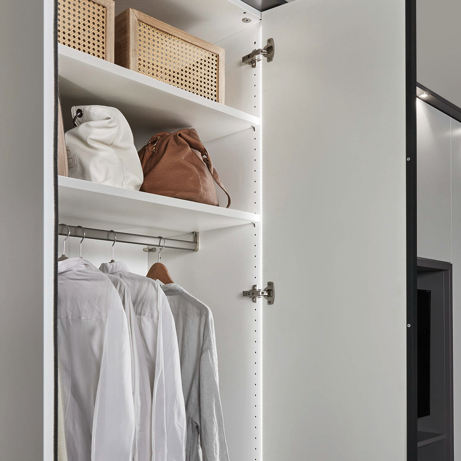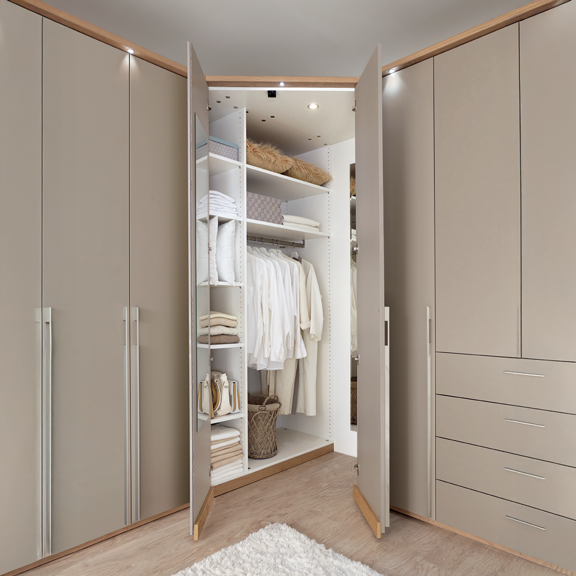 A choice of wood and colour options, door and handle styles and additional interior accessories allow you create your ideal wardrobe system.