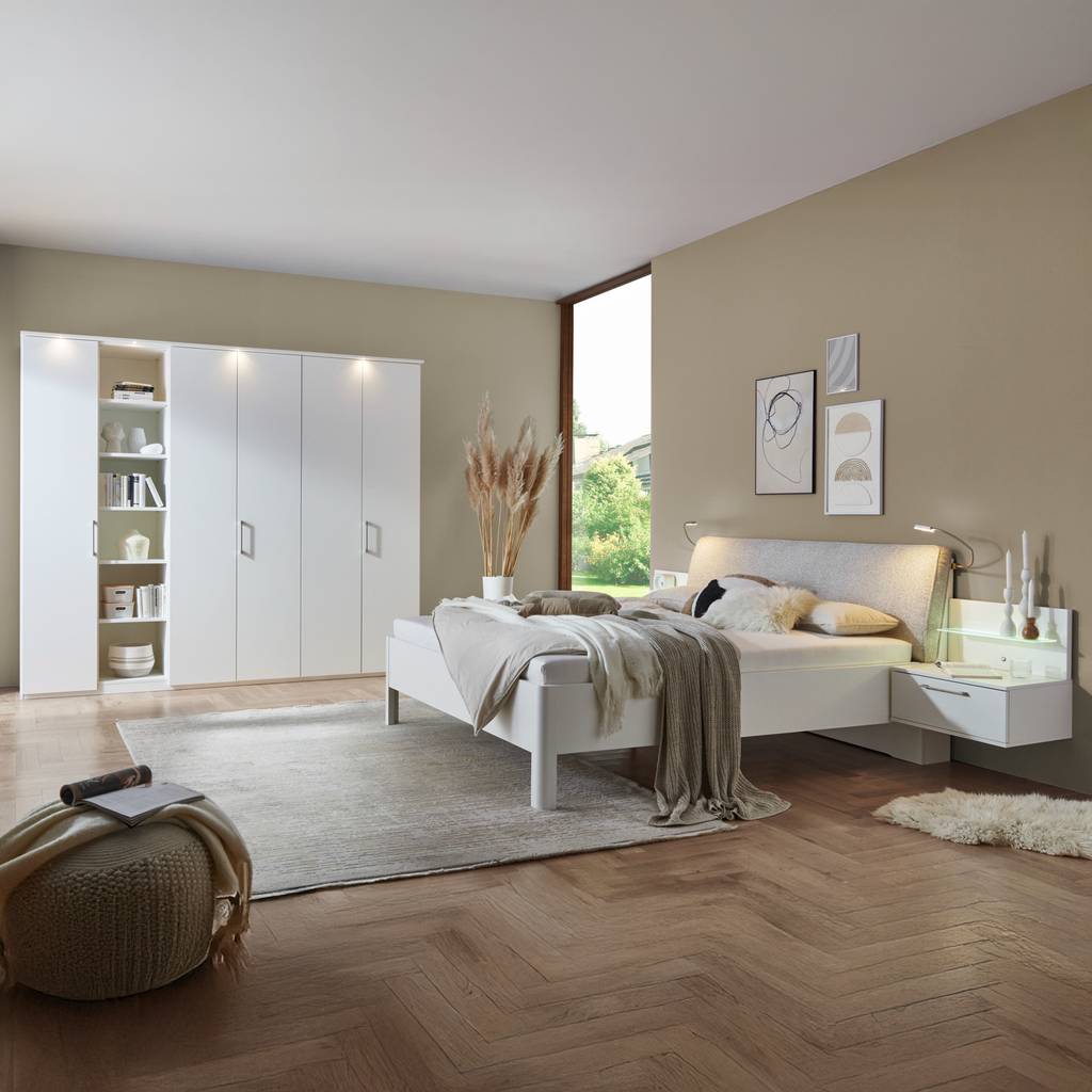 Be inspired and design your bedroom with the wardrobe and bed system to your liking. Our flexible elements allow for tailor-made planning for every room situation.