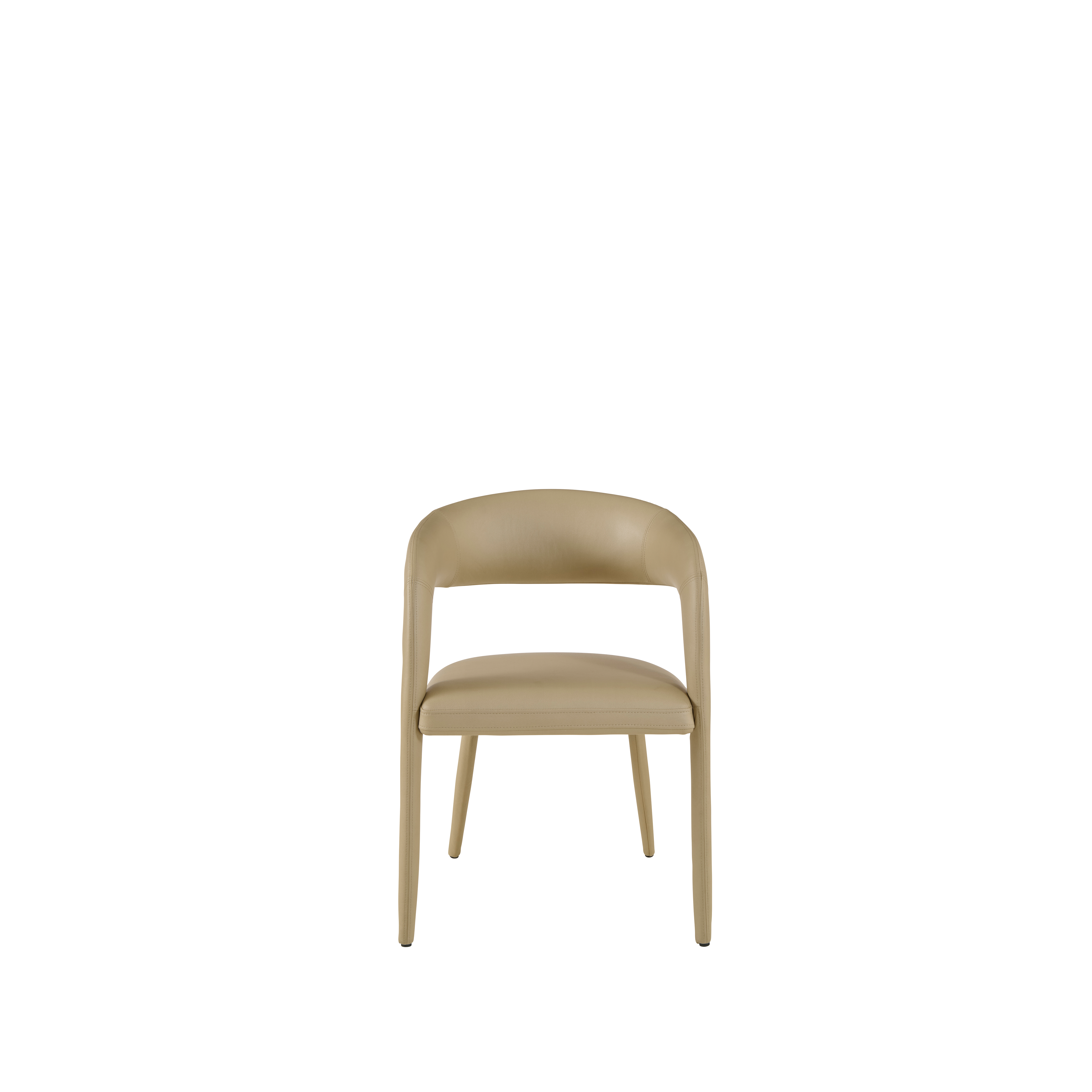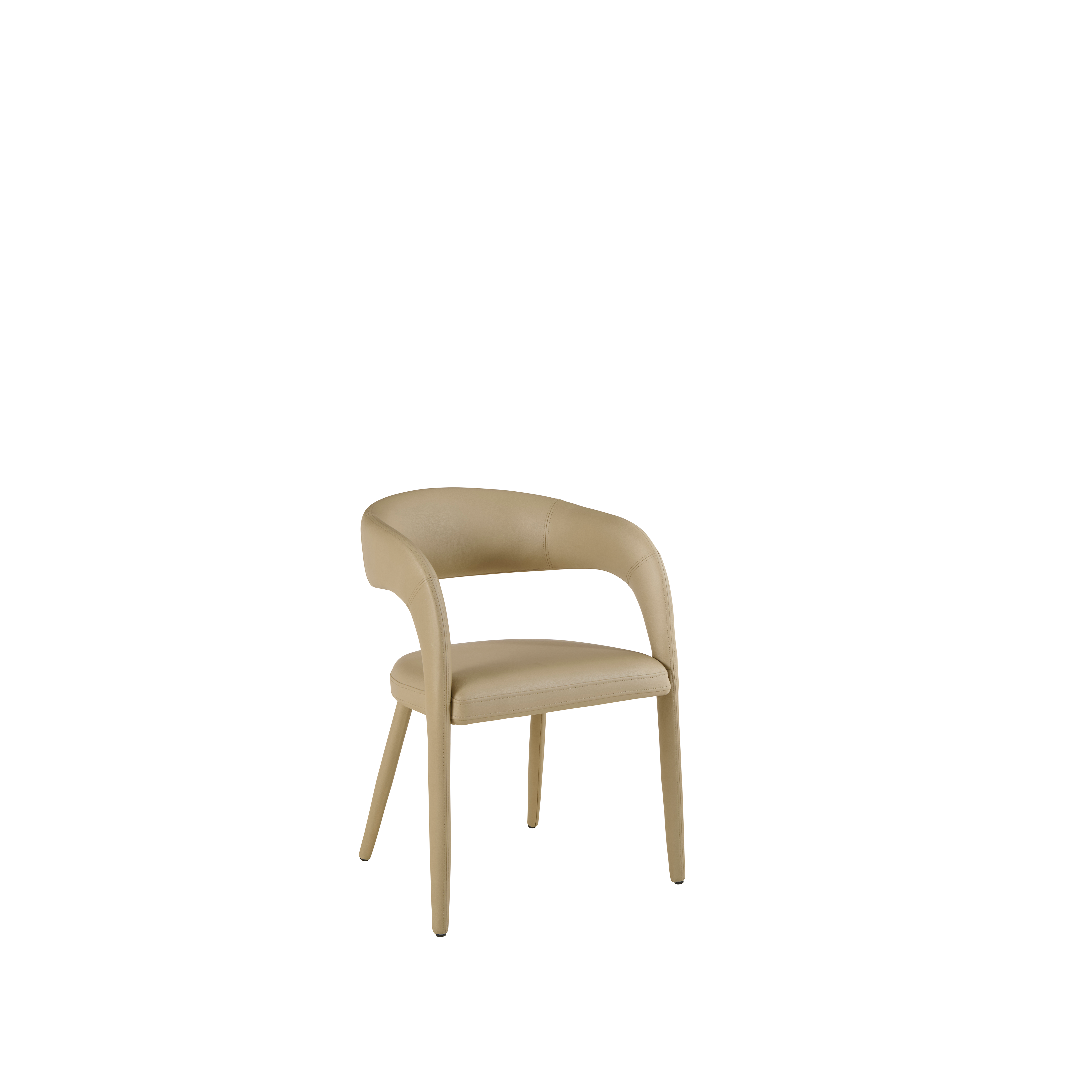 From the generous dining table supported by curved pillar legs to the streamlined sideboard with hidden storage and thoughtfully crafted drawers, the range balances form and function in every detail. Coordinating dining chairs, available in soft neutral upholstery, offer exceptional comfort with wraparound backs and subtly cushioned seats.