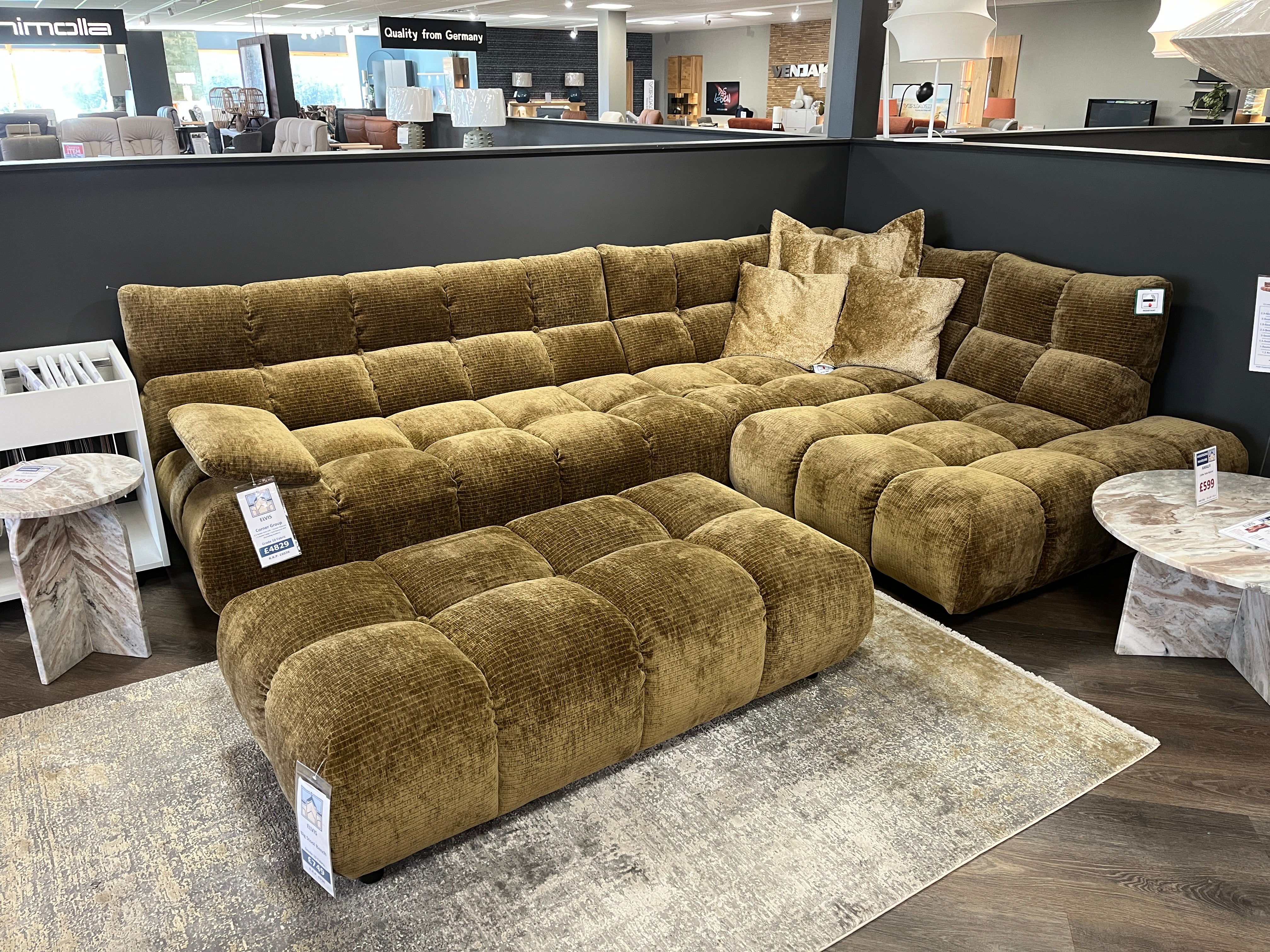 Elvis Chenille Corner Group Sofa + Footstool + Cushions