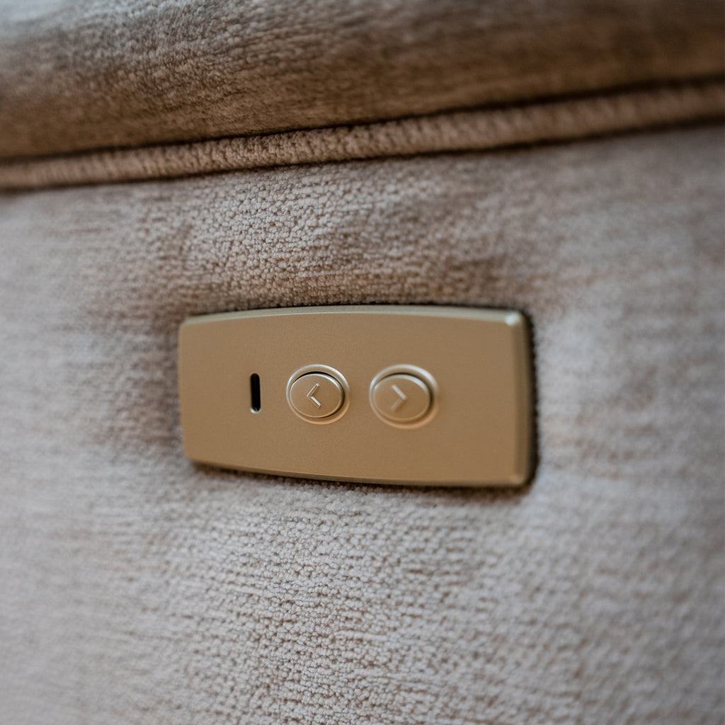 Our Sandford Sofa range has scrolled arms, curved legs, and deep sumptuous cushions. You can choose from a static or motion option with a smooth footrest mechanism. You can easily put your feet up with the added benefit that the sofa stays close to the wall so you don’t need to compromise on space. Cleverly, this option also comes with a USB port in the arm of the sofa.