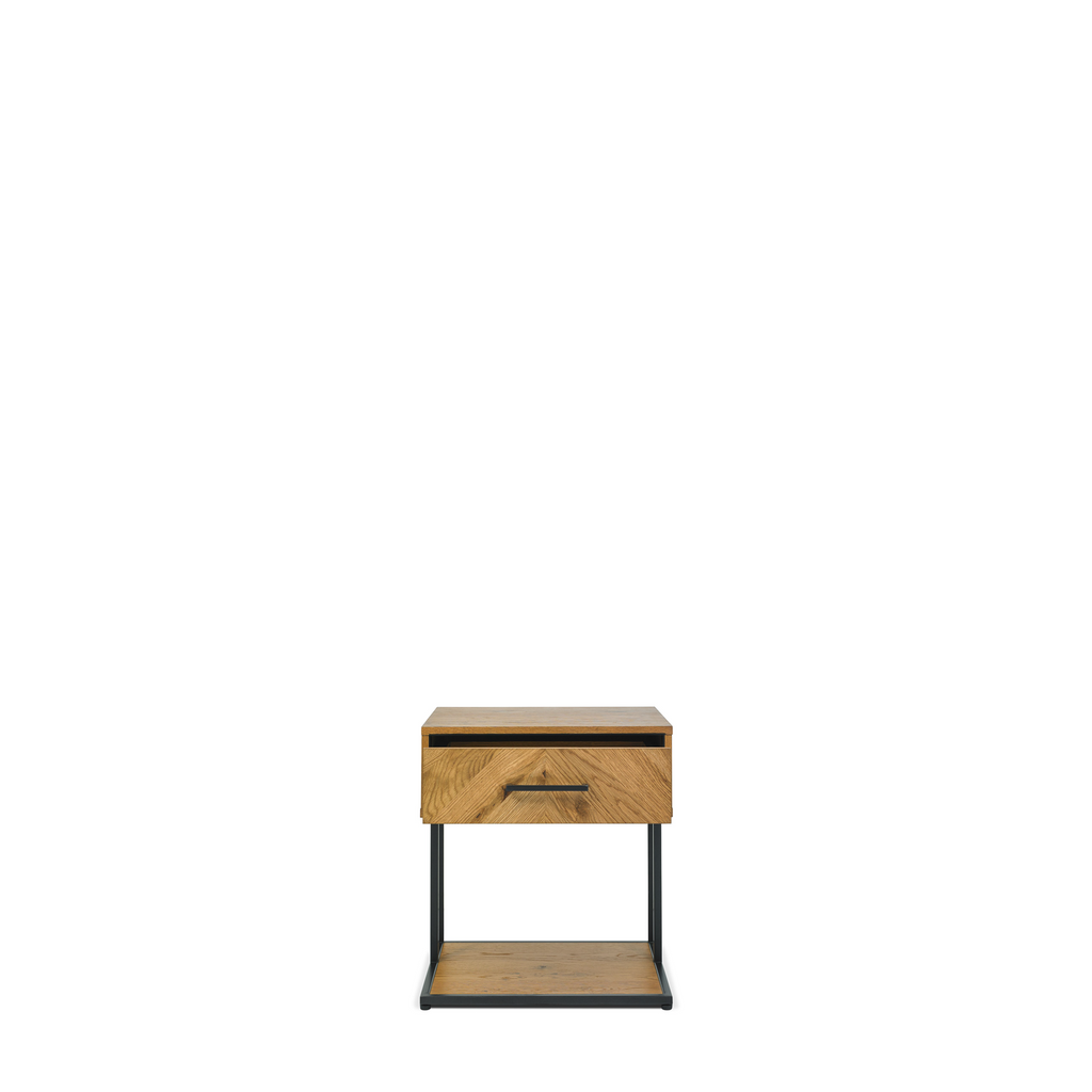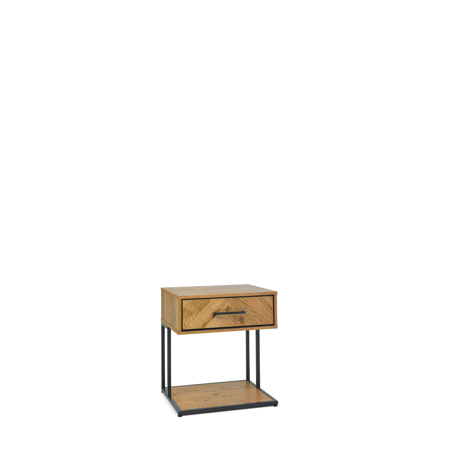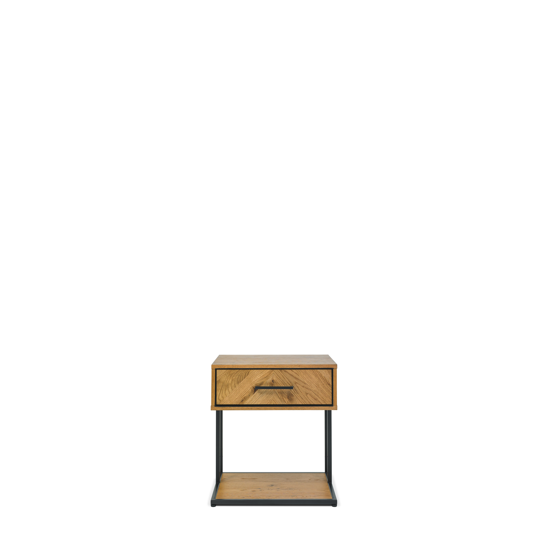 With dynamic zigzagging veneer patter, Chevron Rustic Oak is sure to make a stylish statement in any contemporary bedroom. Consisting of rustic oak veneers that are hand laid in a chevron pattern and oiled to highlight the rich character of oak, this range adds warmth and texture in abundance. Contrasting peppercorn inlay detail within the recesses of the drawers, doors and headboards combine with the peppercorn powder coated metal frames to give the range a slightly industrial edge. Quality mechanisms such as fully extending side mounted soft-close drawer runners add functional finishing touches to Chevron's on-trend, mixed-media aesthetic, resulting in a collection that is both practical and stylish.
