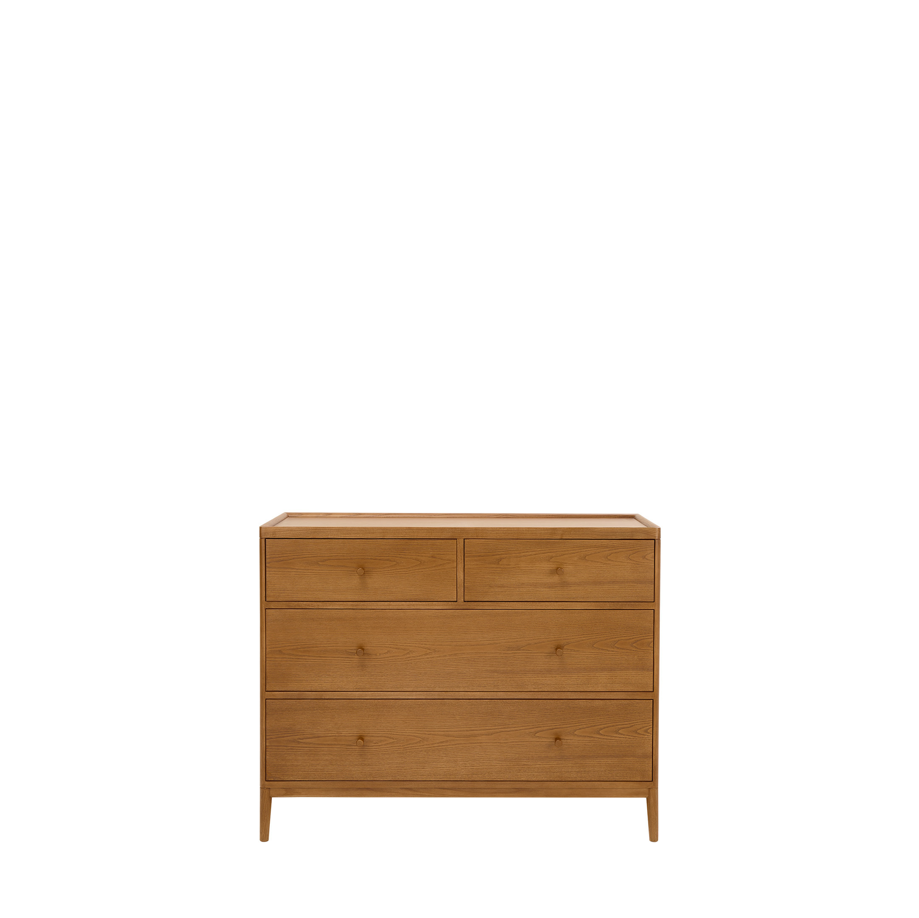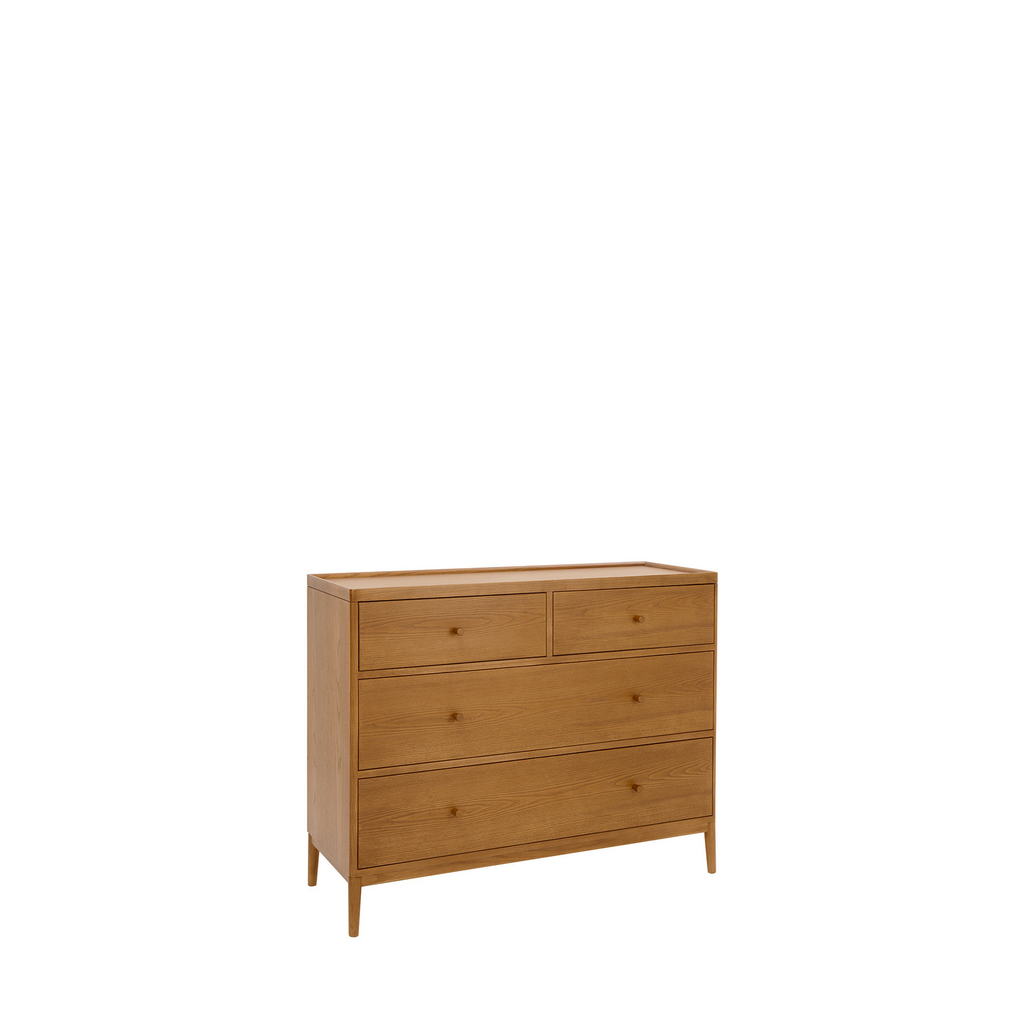 The Salina 4 drawer wide chest offers substantial storage space for all your clothes, with 2 small drawers at the top and 2 wider and deeper drawers below. As with the rest of the Salina range it has a practical tray top which stops items rolling off the surface. Made of solid ash with a Vintage finish.