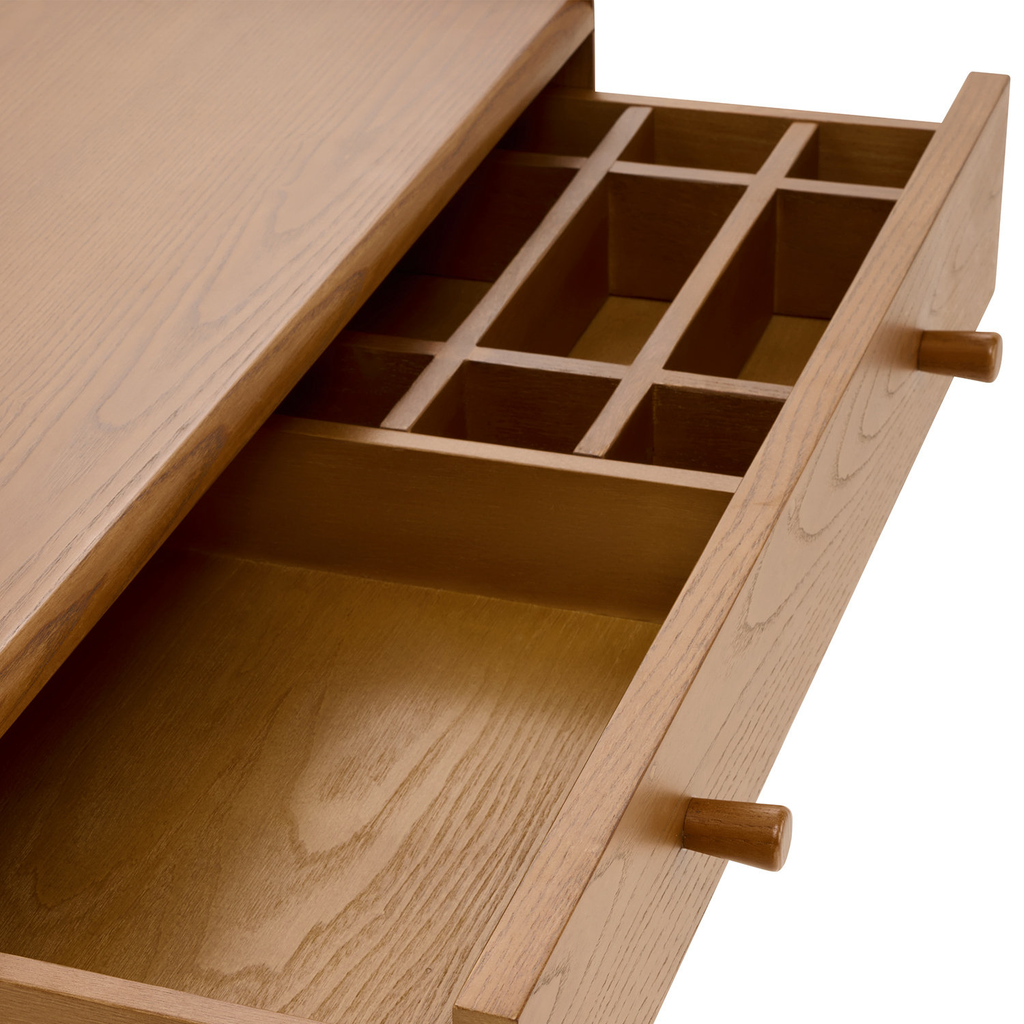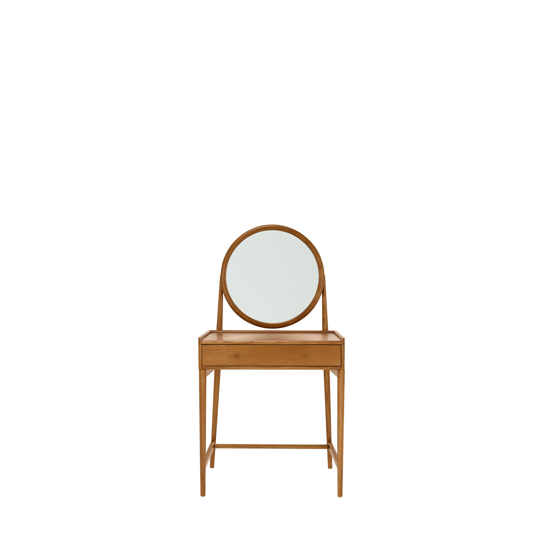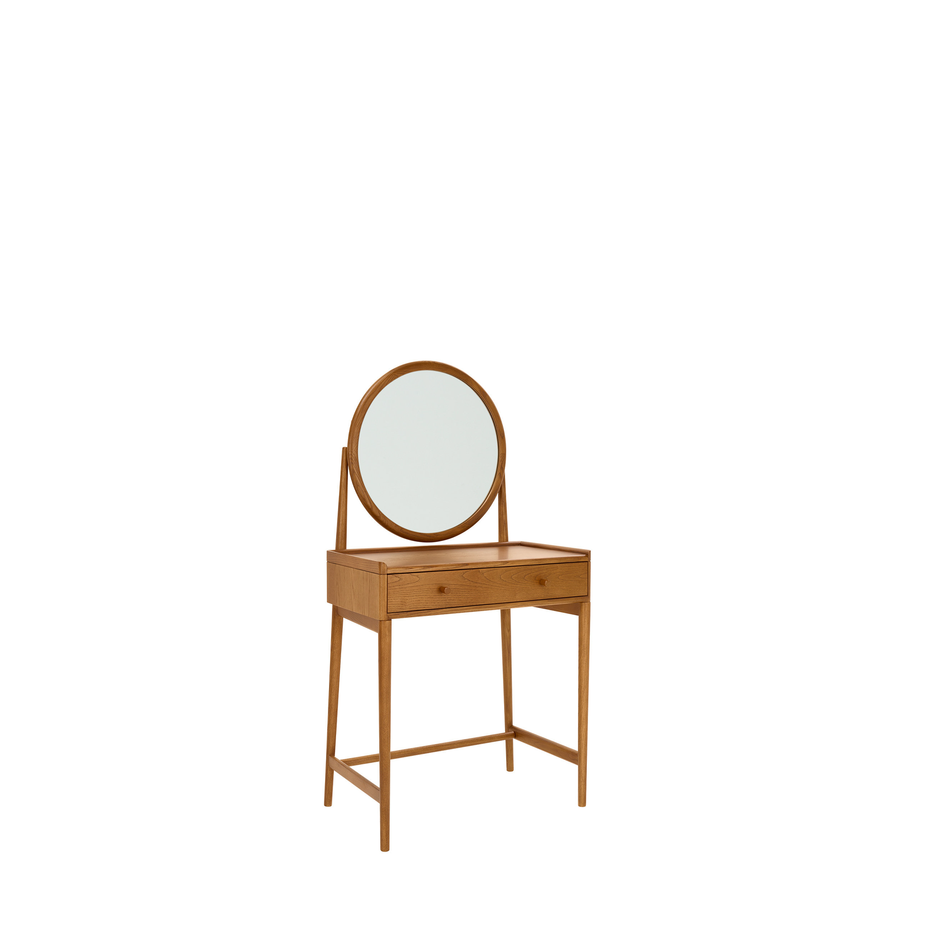 The statement Salina dressing table is an eye catching piece in any bedroom with its classic round mirror. It has a useful tray top to prevent items from rolling off the back or sides and the drawer has a divider in one half of the drawer for storage of small item. Available in our vintage finish.