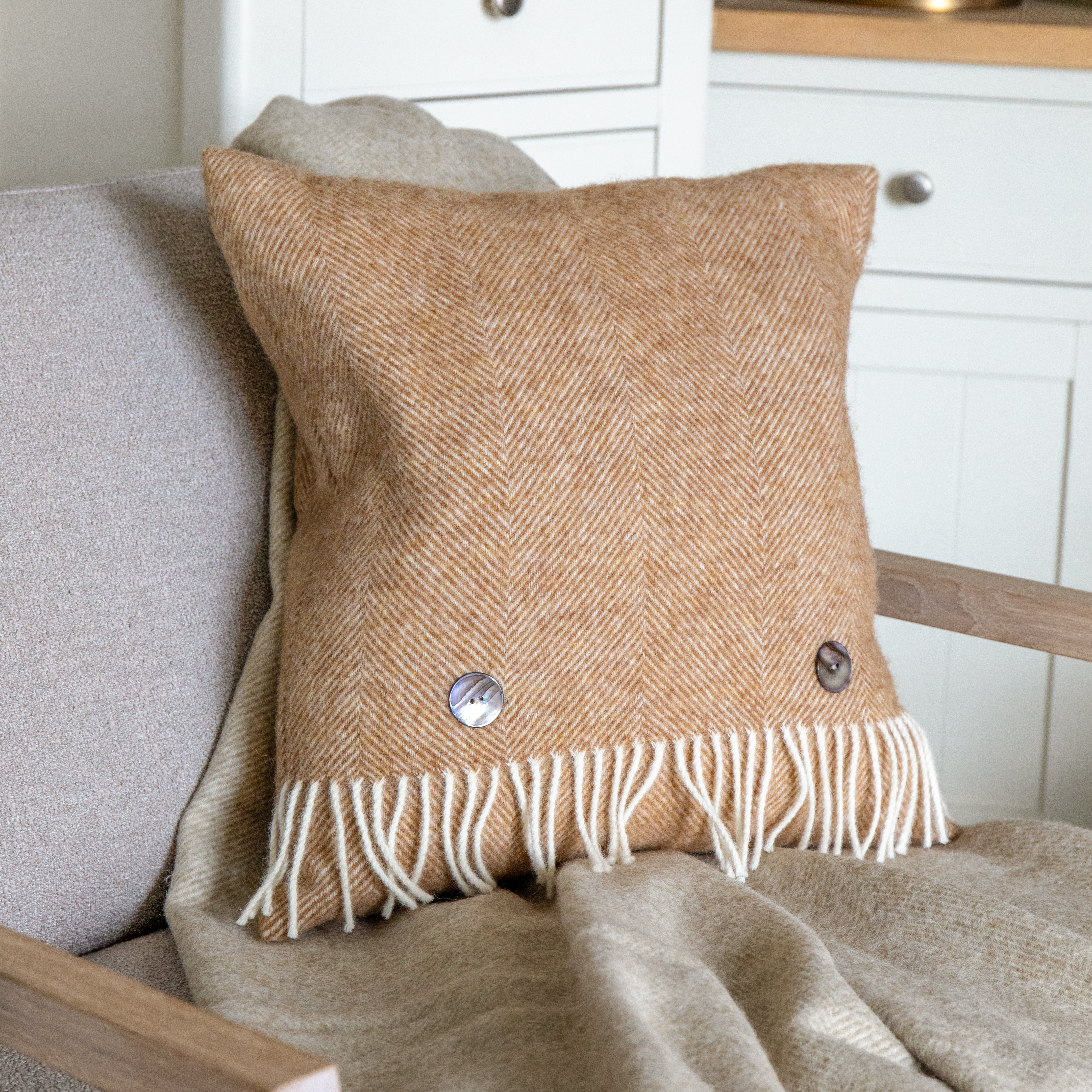 Bronte Wool Cushion - beautiful and natural Pure New Wool, Shetland and Merino Lambswool quality cushions from the innovative British Manufacturer Bronte by Moon. Fabulous styles and colours, all designed, cut, dyed, woven and made in the UK from British Wool, Shetland-quality Wool or the softest British Lambswool and filled with quality feather inners. Whether you are looking for checks, stripes, spots or herringbone, we have a wonderful selection.