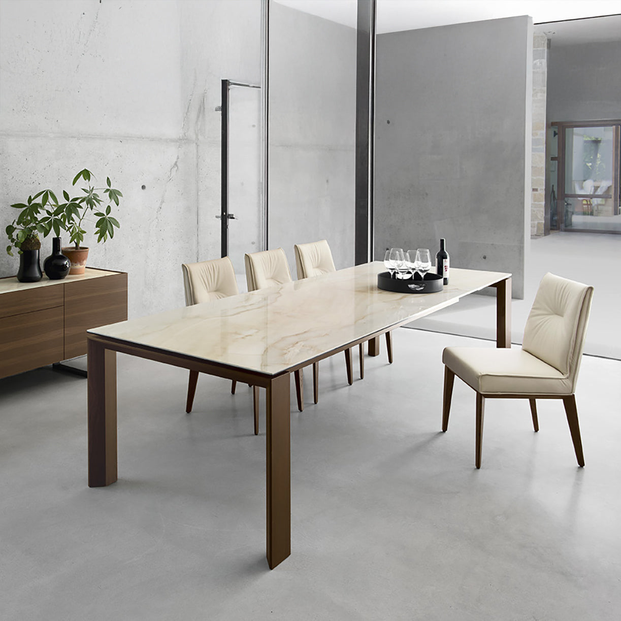 The Omnia table is perfect for decorating the home dining room or the meeting room of an office. Discover the available finishes!