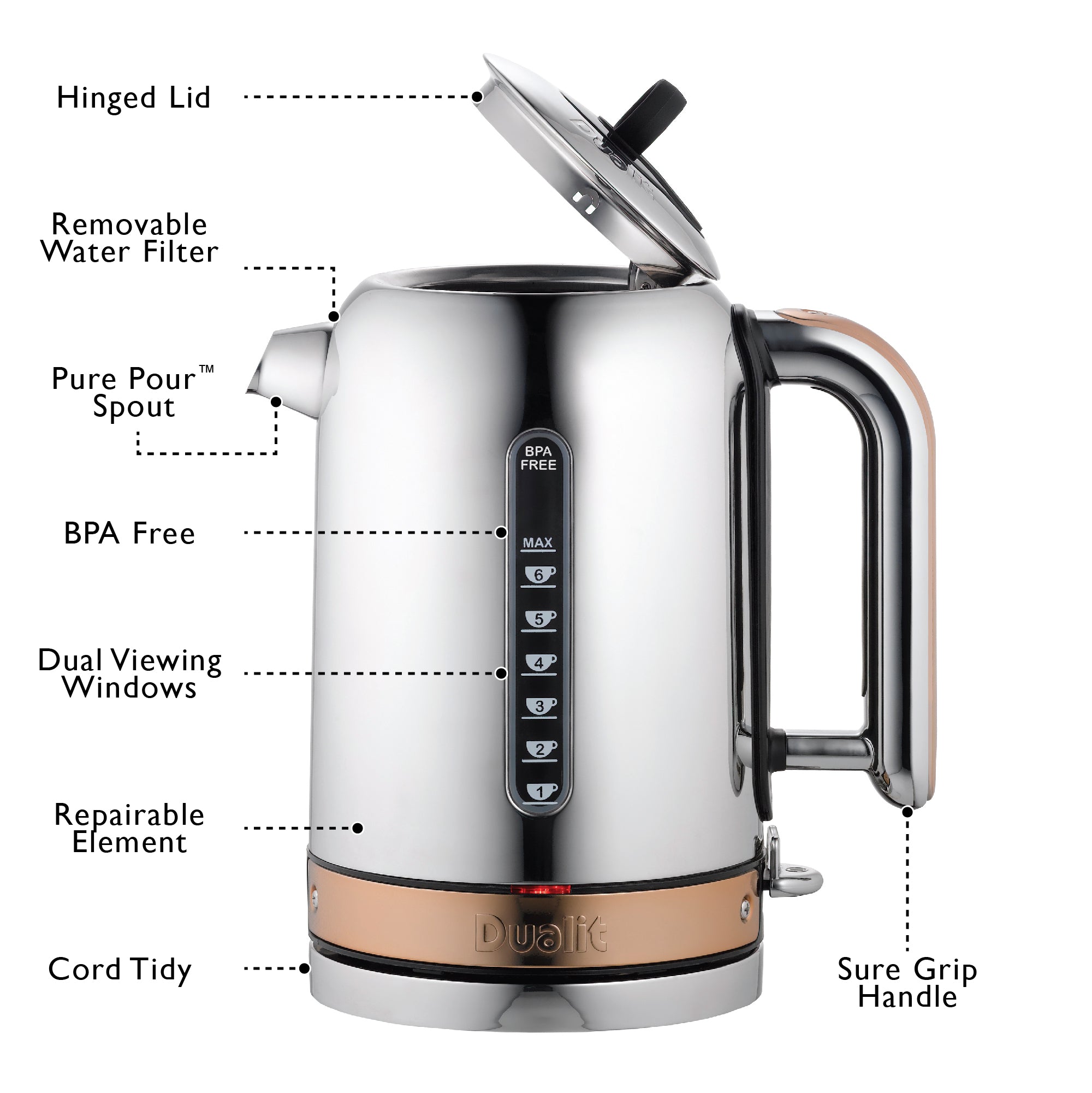 The Classic Kettle is a premium kitchen appliance known for its timeless design, durability, and superior performance. This kettle has been crafted to deliver both elegance and efficiency with a sleek, stainless-steel body and an exceptional boiling performance. The combination of outstanding craftmanship with its modern design makes it an ideal choice for those who seek reliability, style, and excellent performance in their kitchen.