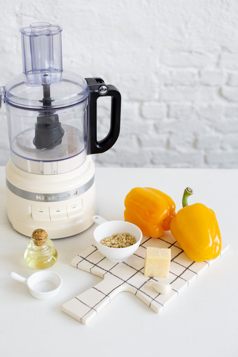 The KitchenAid 1.7 L food processor is a compact and versatile tool that won't take up much room. The blade, disc and other accessories fit inside the bowl when not in use and the cord wraps neatly under the base. You can chop, purée, mix, knead, shred and slice with precision. The multi-purpose blade is for quickly chopping or mincing anything from herbs to fruit to nuts. A dough blade will knead yeast dough thoroughly. You can create medium or thick slices of potatoes, tomatoes, vegetables and even chocolate. And shred hard fruits and vegetables, cheese or chocolate too. Control the results with a choice of low, high or pulse buttons. It's easy to use and set up, with a twist-free design so you simply click the bowl into place and open with the hinged lid. Once you've finished, the bowl and all the accessories are dishwasher-safe.