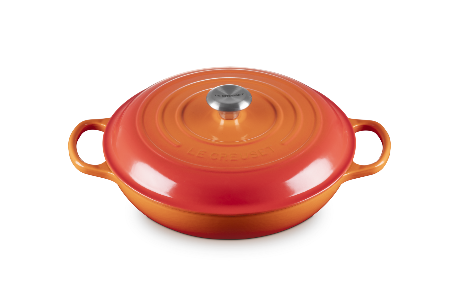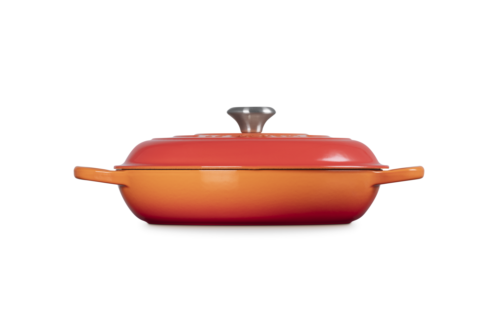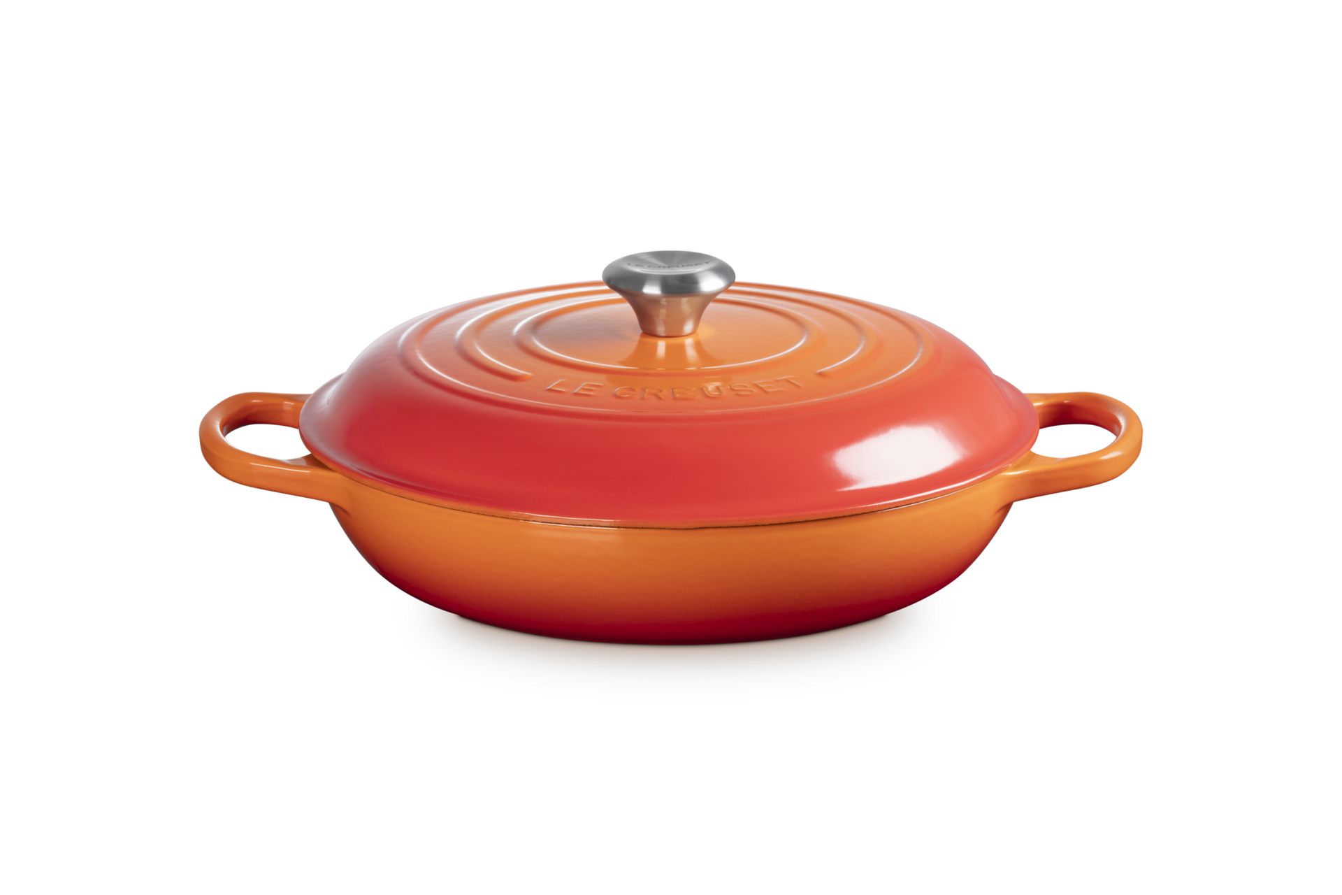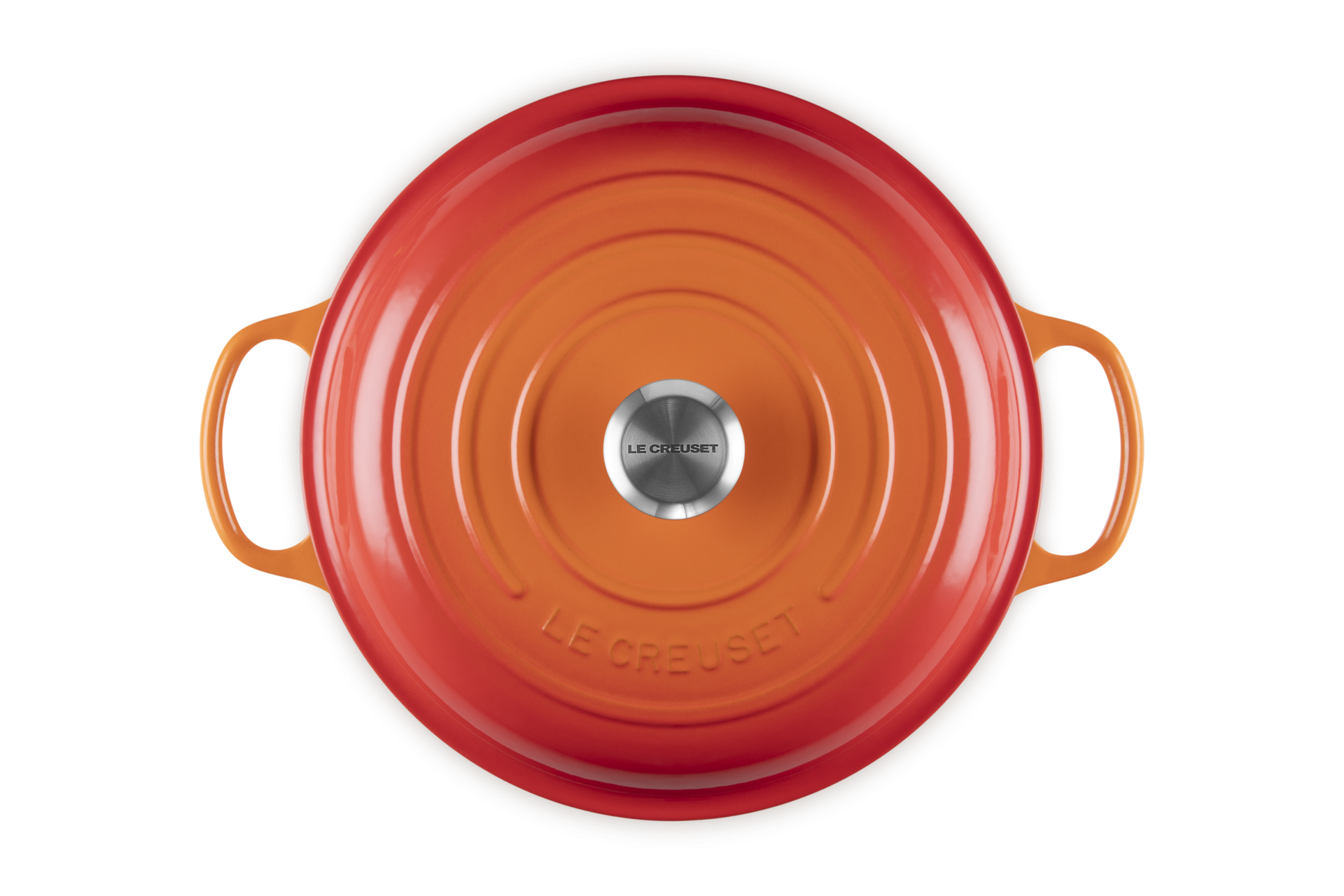 Crafted at our original French foundry, our cast iron pieces are the stuff of culinary legend. This shallow casserole is no exception. The large flat shape and shallow sides make it perfect for browning meat and vegetables, simmering casseroles, stir frying and baking. It enhances caramelisation, for moreish mouthfuls.