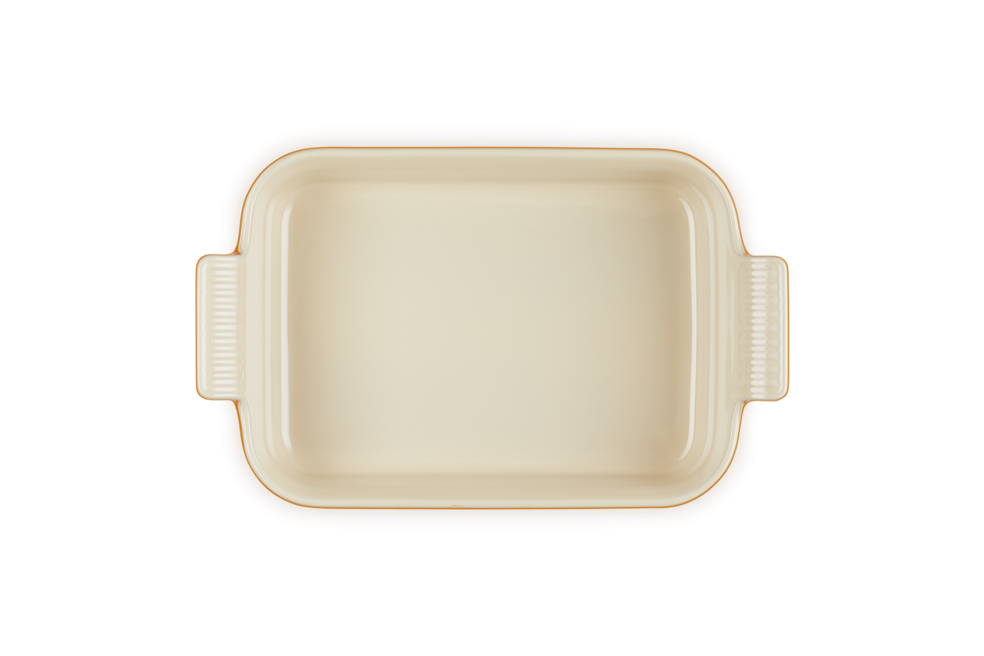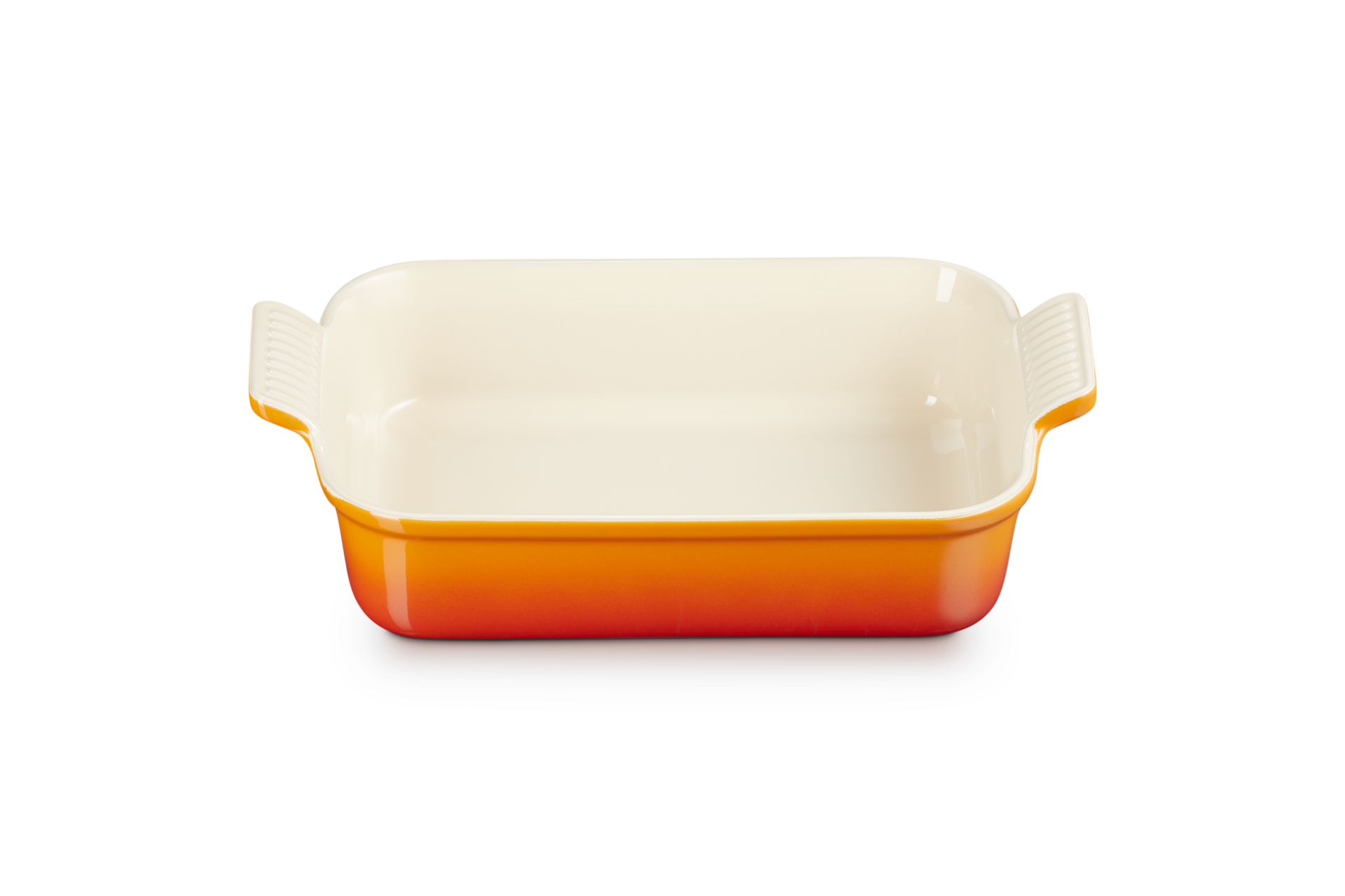 This heritage stoneware dish is a kitchen essential. Its rectangular shape fits all sorts of ingredients, making it a very versatile piece for your everyday roasting, baking, marinating and serving. Easy-grip scalloped handles mean it’s safe and effortless to move around, while deep side walls bring you plenty of cooking space.