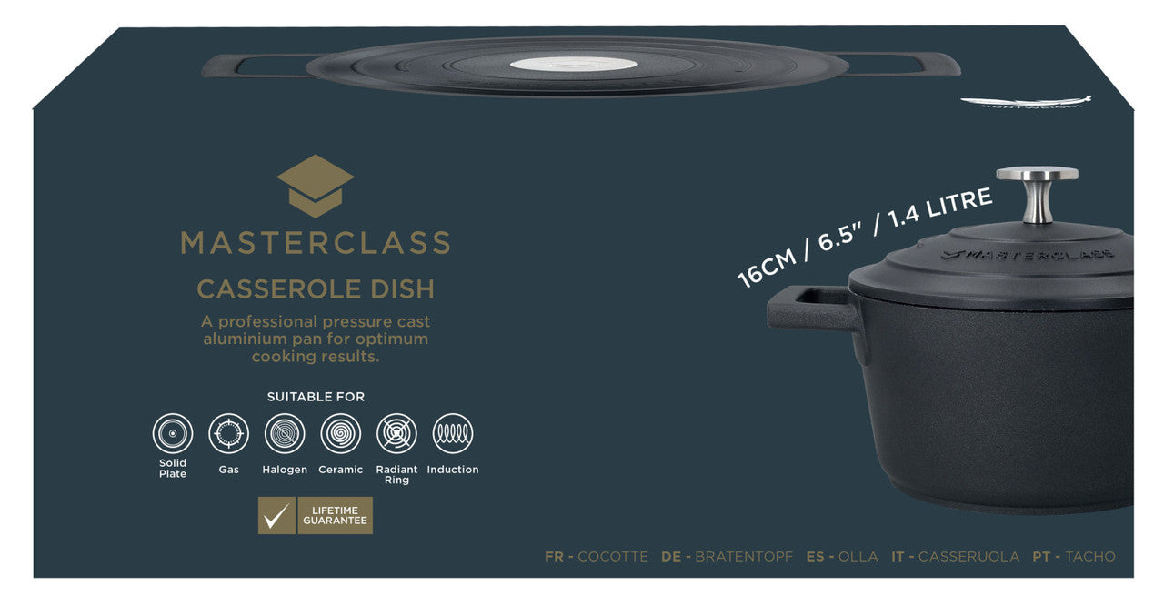 MasterClass 1.4L Cast Aluminium Casserole Dish, Black