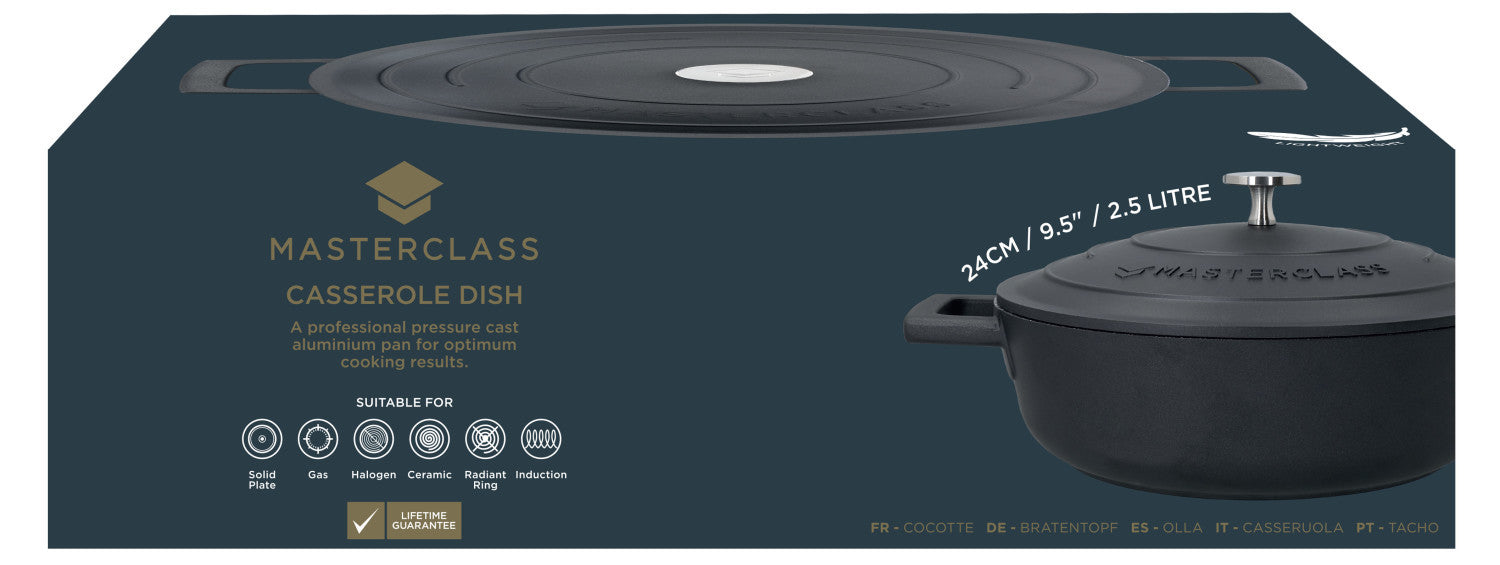 MasterClass Cast Aluminium Shallow Casserole Dish, 2.5L, Black