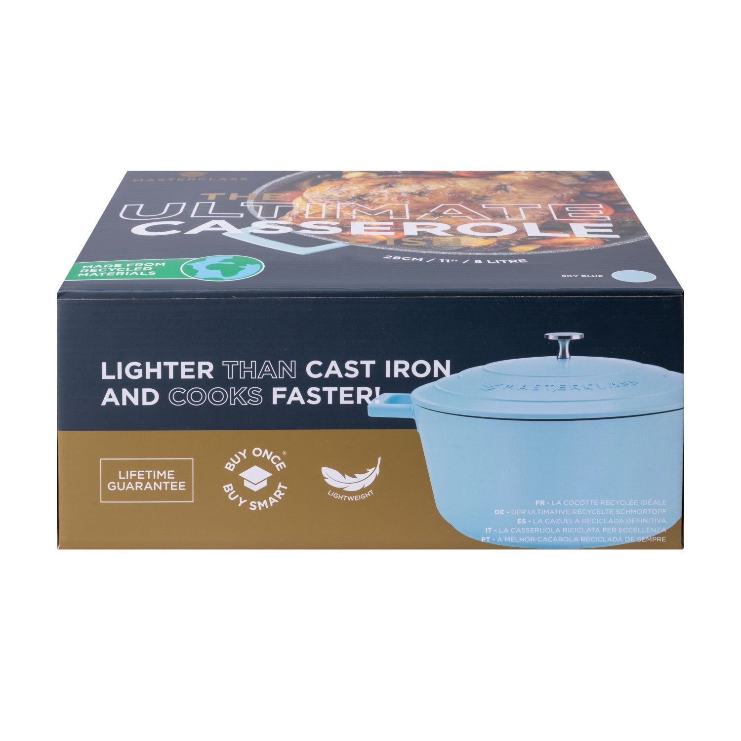 Part of the best-selling Cast Aluminium cookware range from MasterClass, this innovative casserole dish with outstanding performance is lighter than cast iron but just as strong.