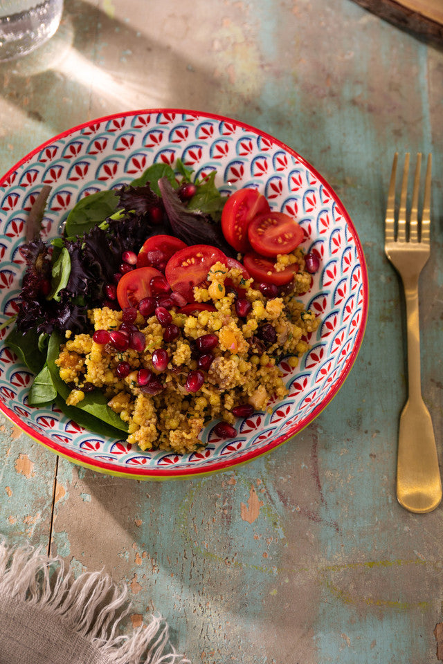 Add colour and charm to your dining with this vibrant stoneware bowl, crafted with a wide, shallow shape ideal for pasta, salads, noodles, stews, and more. Perfect for both everyday meals and entertaining. Featuring bold patterns and artistic detail, it suits both modern and eclectic tables. Microwave and dishwasher safe, this bowl combines style and practicality, an eye-catching addition to any kitchen collection.
