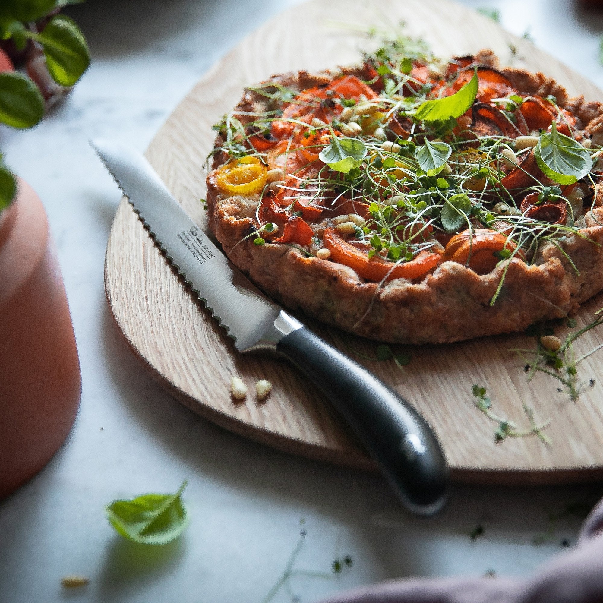 Designed in consultation with professional chefs, this award winning kitchen knife features a fully forged German DIN 1.4116 stainless steel blade with a full tang for extra strength. The scalloped blade edge is hand applied at a 15° angle. The tactile handle is ergonomically shaped for comfort, balance and to minimise fatigue.All Signature knives are gift boxed, have a 25 year guarantee and are dishwasher safe.Part of the Signature kitchen collection which includes kitchen knives, scissors, utensils, kitchen accessories, kitchen storage and textiles.PLEASE NOTE - You must be aged 18 or over to buy knives in the UK.