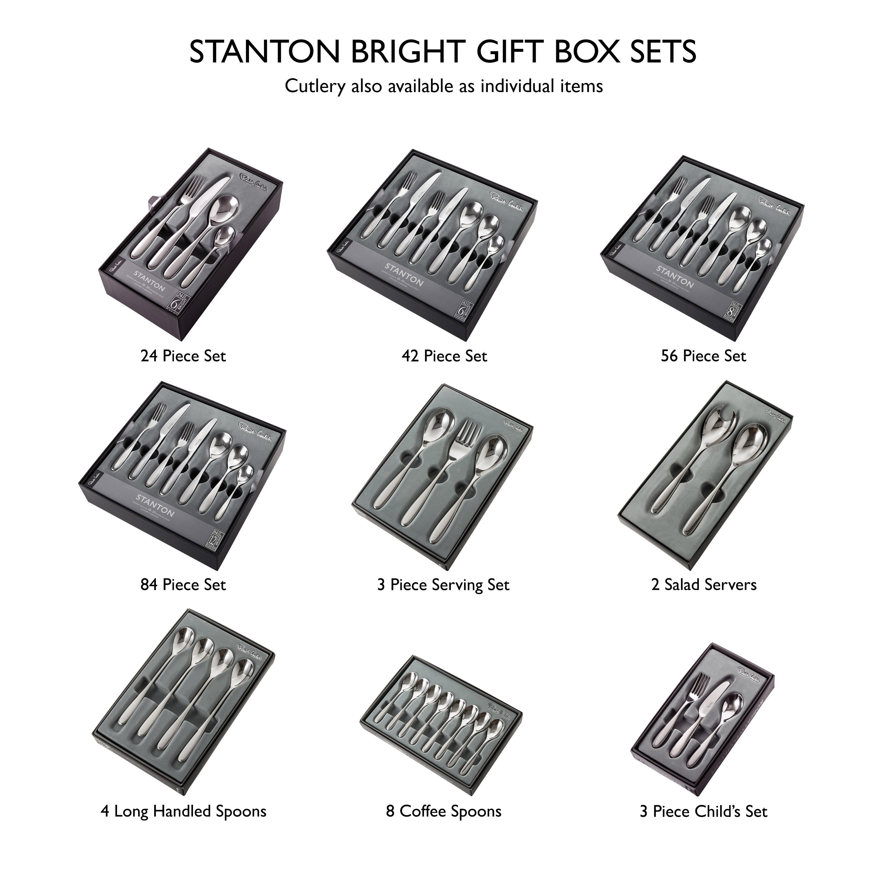Stanton cutlery is an example of beautiful and exact sculpture; well-balanced and comfortable to use. Spoons and forks are made using the highest quality 18/10 stainless steel. Knife blades are made from specially hardened stainless steel to provide the finest possible cutting edge.All Stanton cutlery is available with a mirror or brushed finish, has a 25 year guarantee and is dishwasher safe.