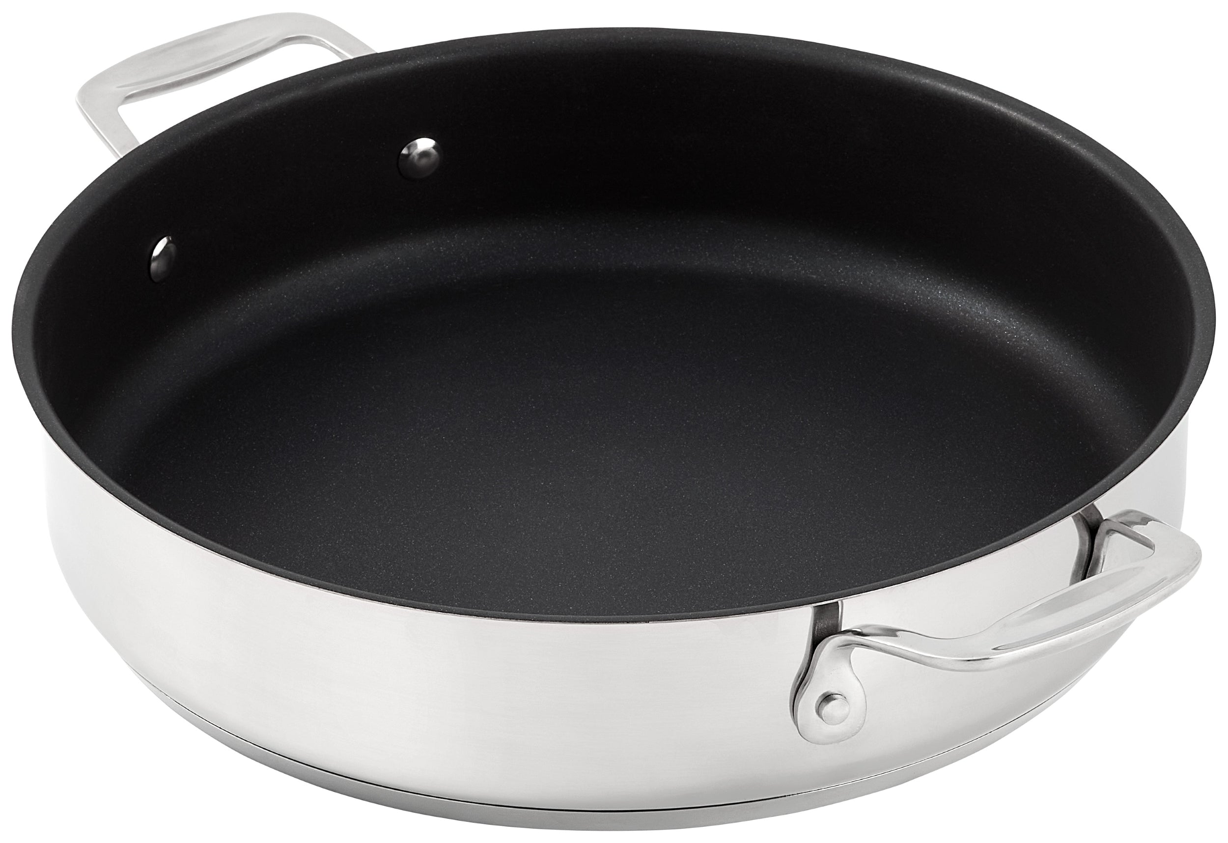 Strong cast steel handles and easy-clean polished steel finish