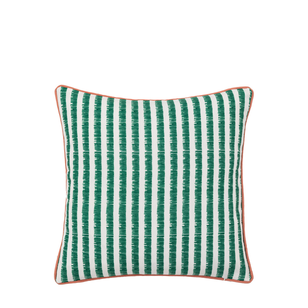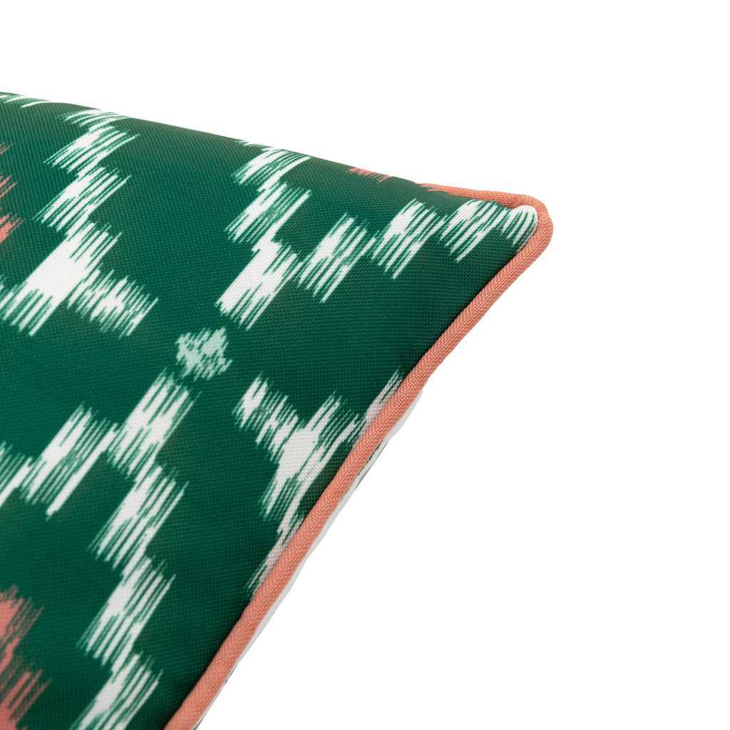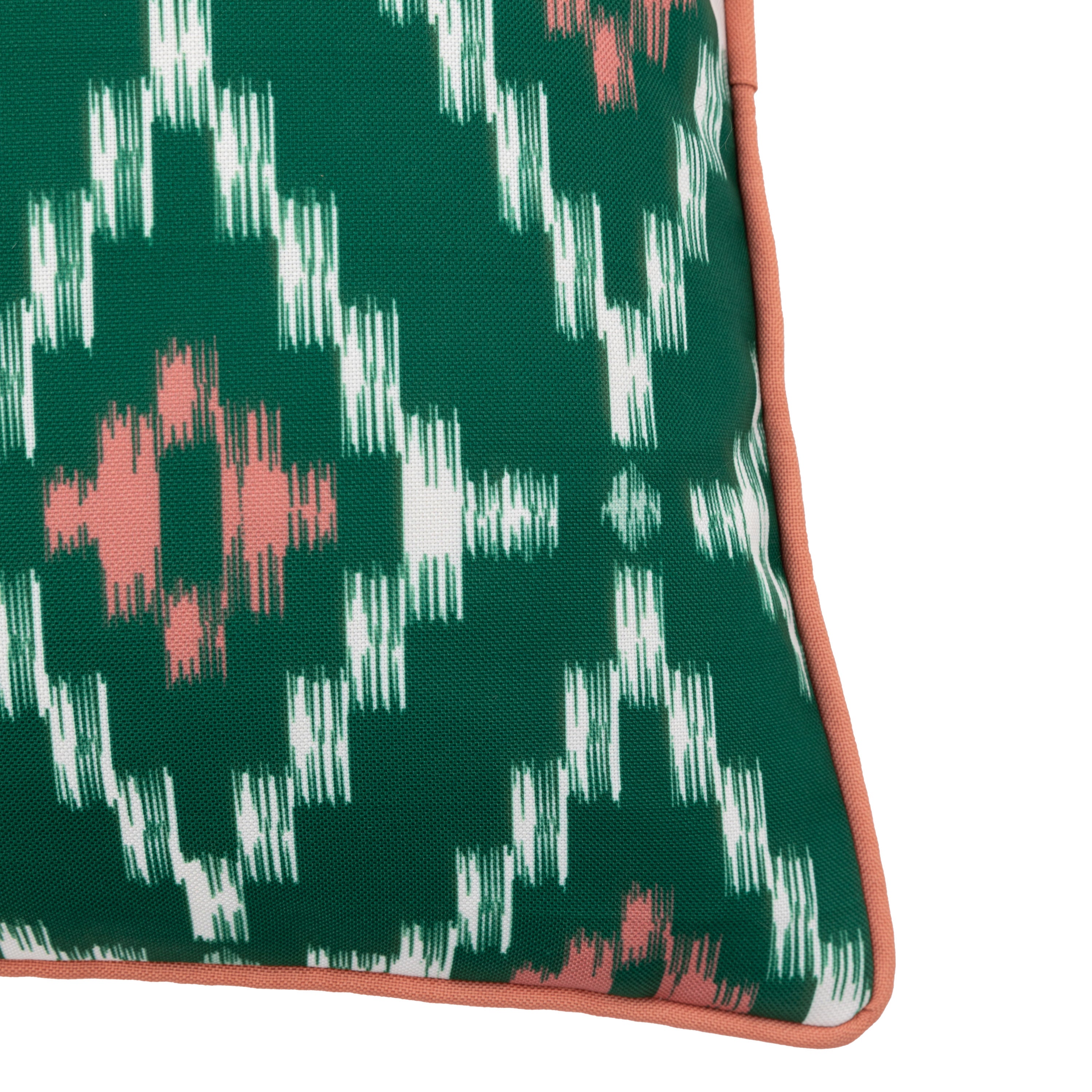 Perfect for adding the wow factor to your space inside or out. This cushions striking coral & green geometric pattern and showerproof fabric make it a must have addition to your space, wherever that is.