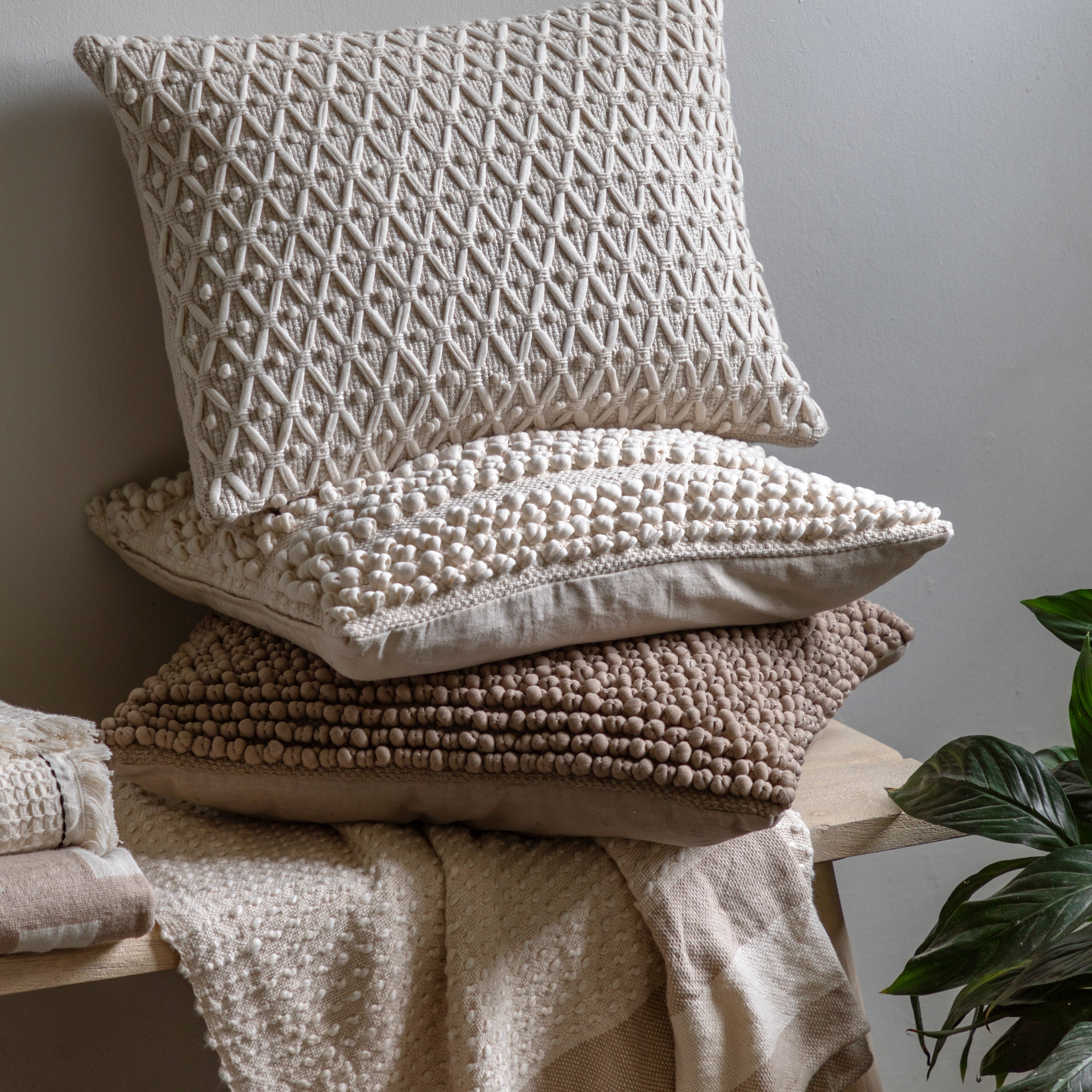 Hand woven with texture and a unique eye catching pattern this soft cushion will add a chic boho touch to any space. The soft cream tone and tactile pattern make this the perfect addition to your room.