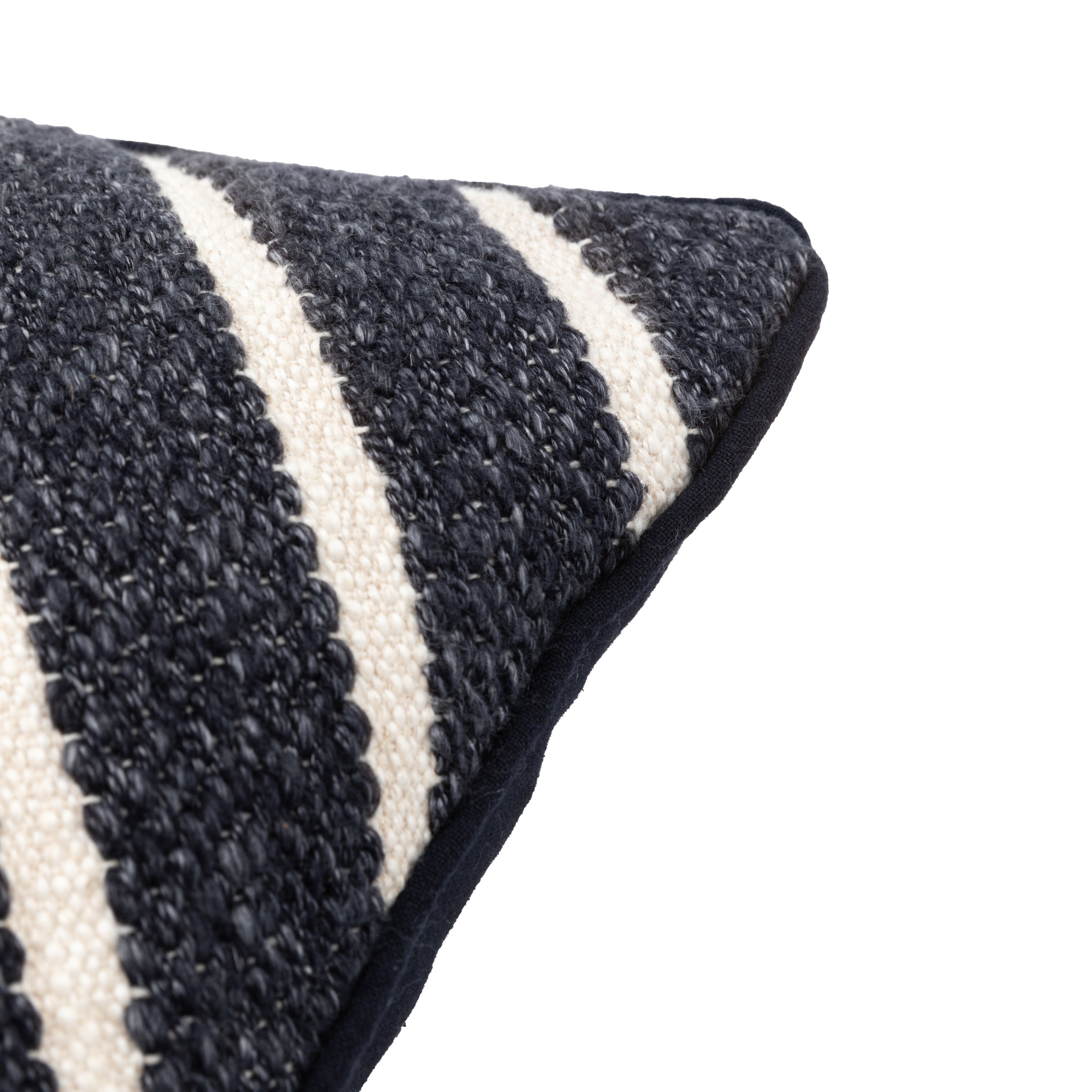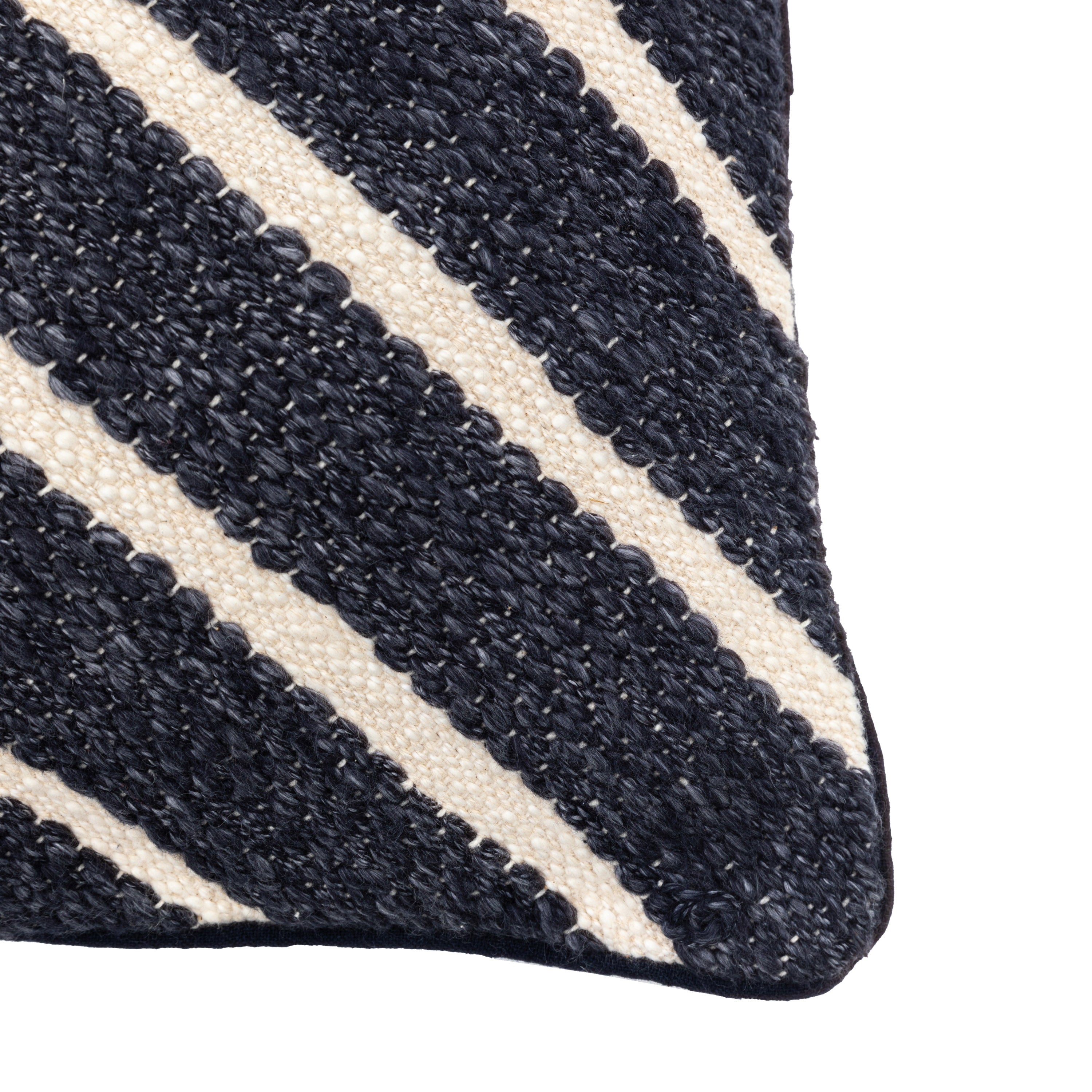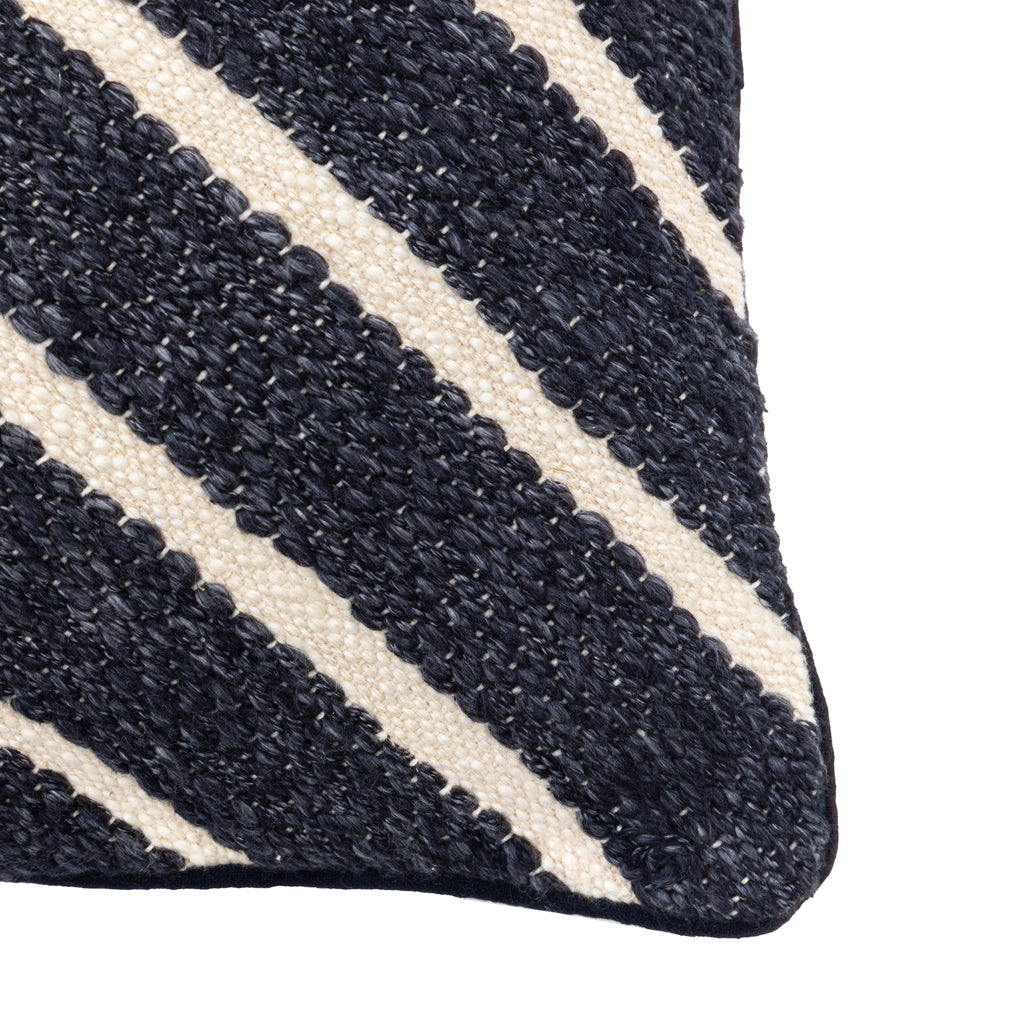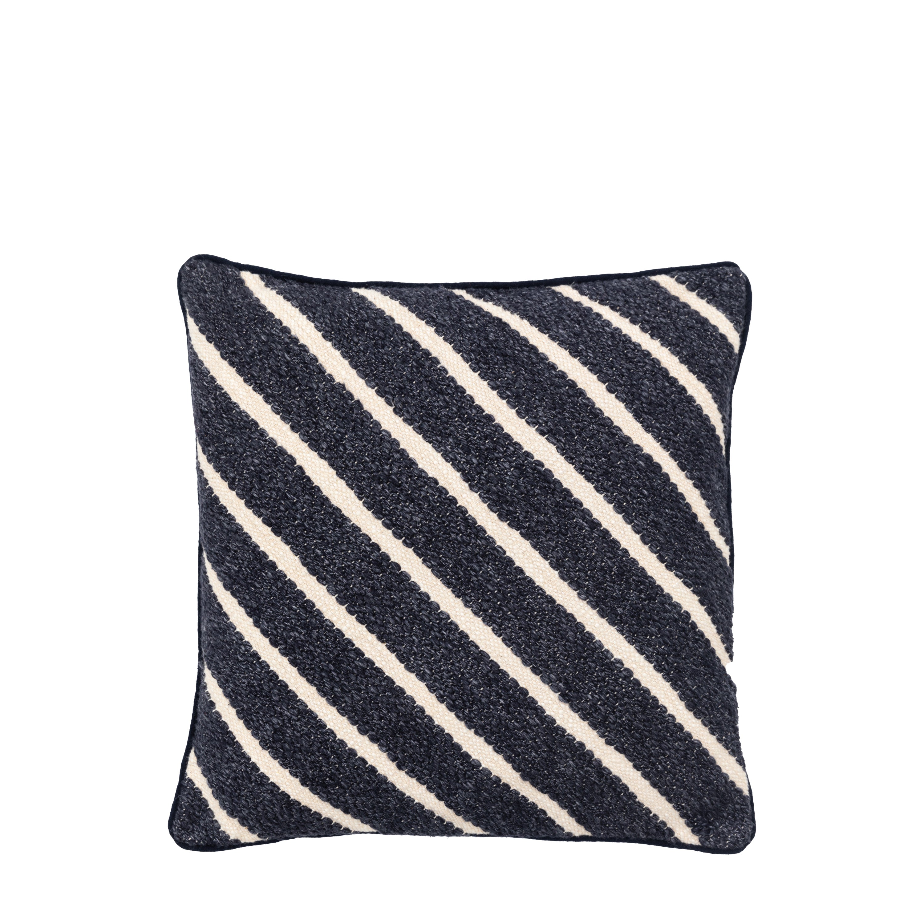 Add a touch of style and comfort to your room with this soft and cosy cushion. With a striking diagonal stripe design in ink blue, this cushion will perfectly complement a wide variety of interior decors.