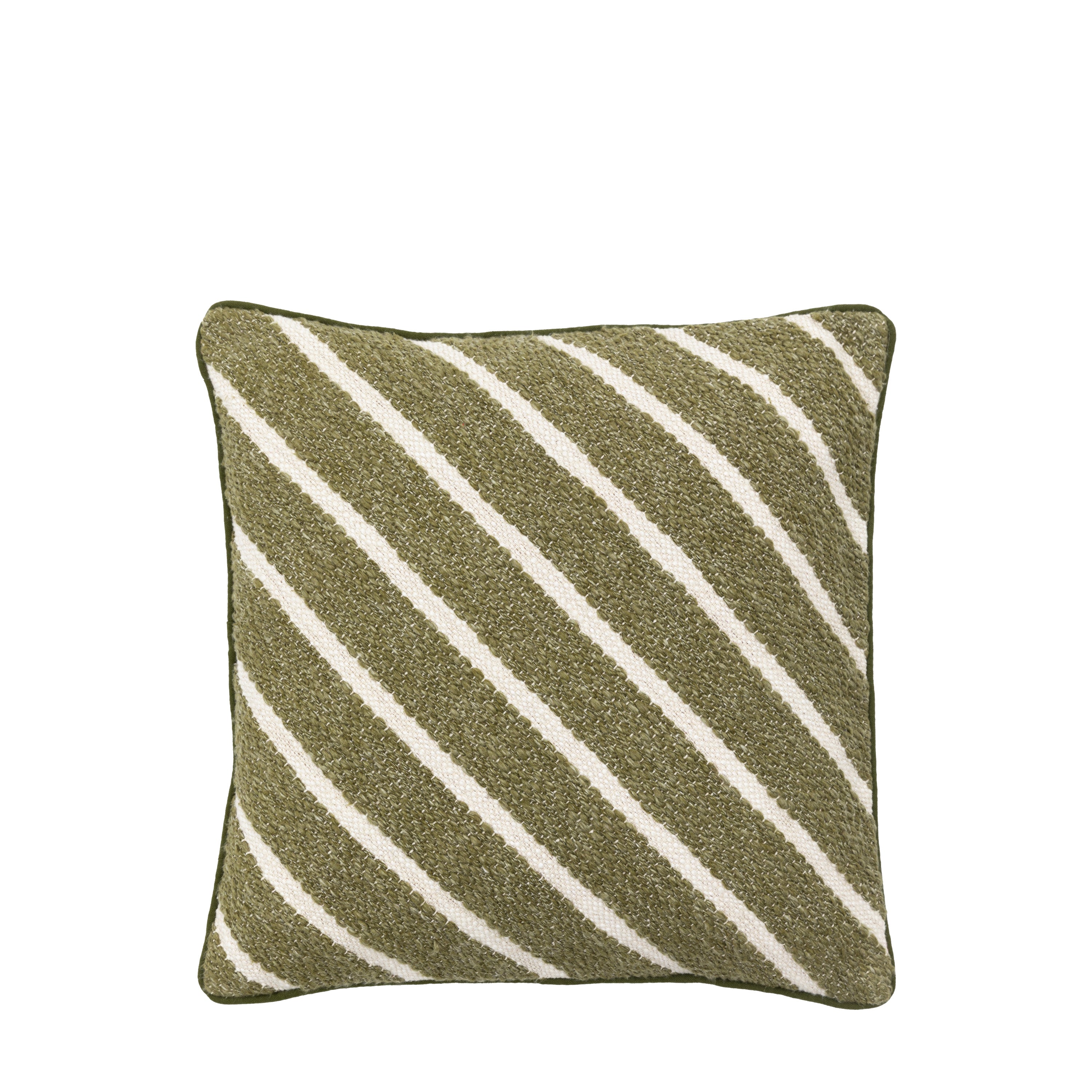Add a touch of style and comfort to your room with this soft and cosy cushion. With a striking diagonal stripe design in olive green, this cushion will perfectly complement a wide variety of interior decors.