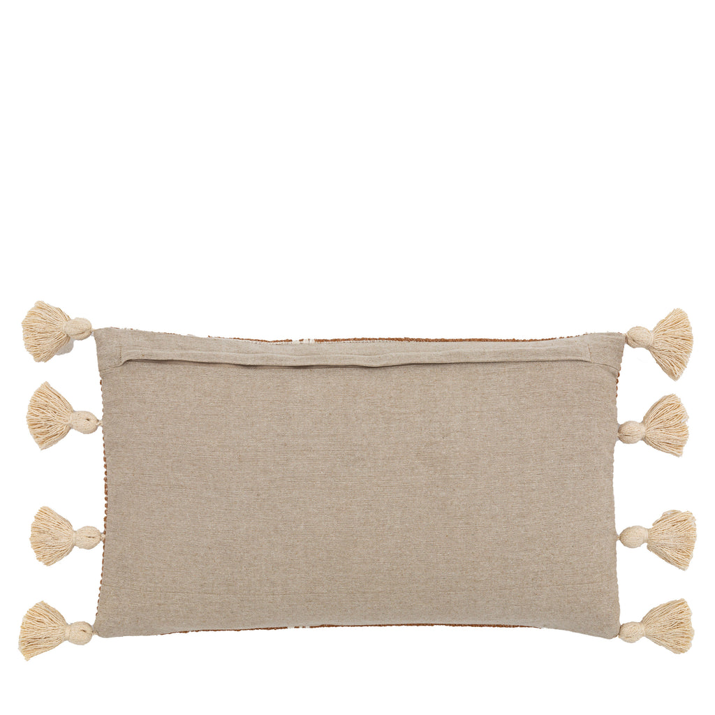 This Aztec inspired woven cushion adds tonal texture to any interior, with characterful corner tassels.