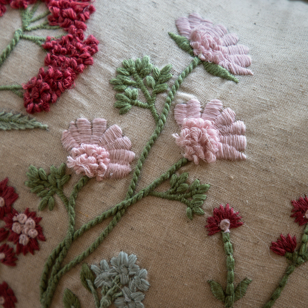 Beautifully embroidered with a meadow of wildflowers this cushion is a charming addition to any room. The piped edged detail and luxury velvet reverse add the finishing touch.