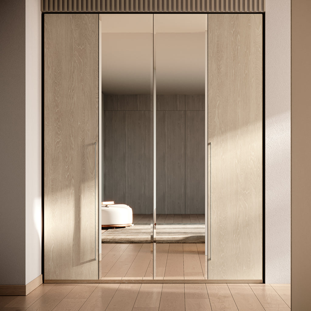 - Beveled mirrors and wave-shaped handles, adding a distinctive Italian flair.