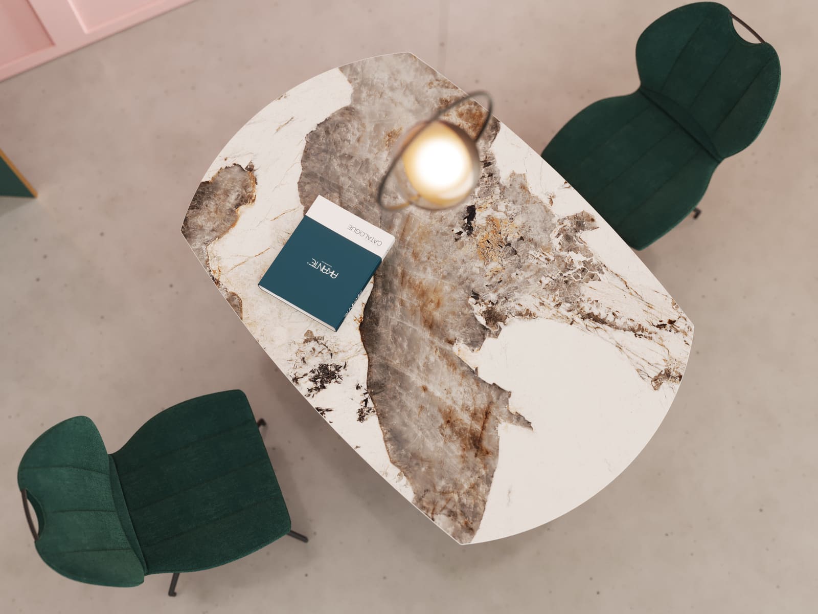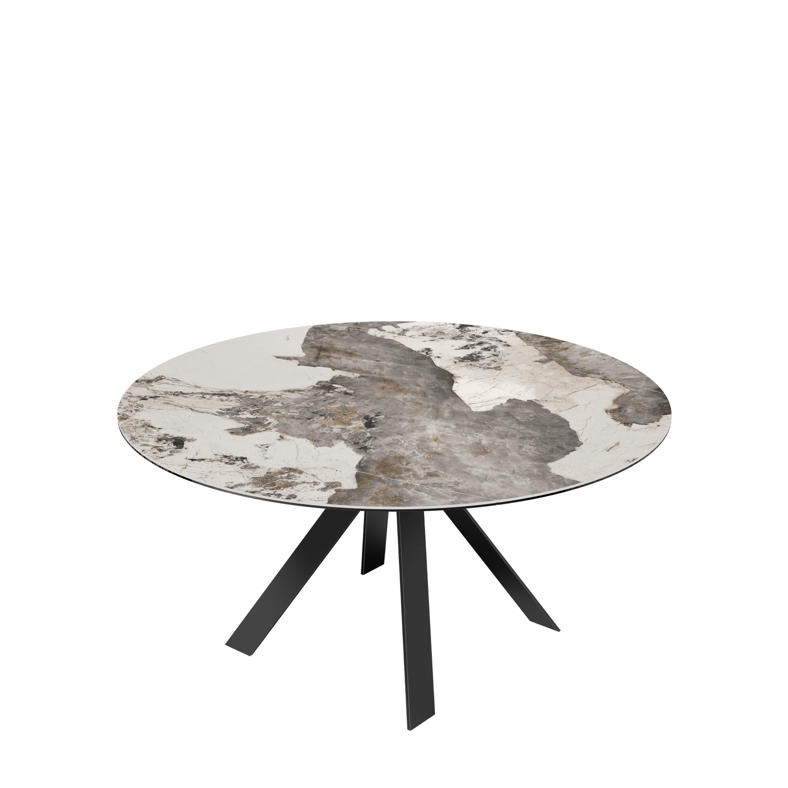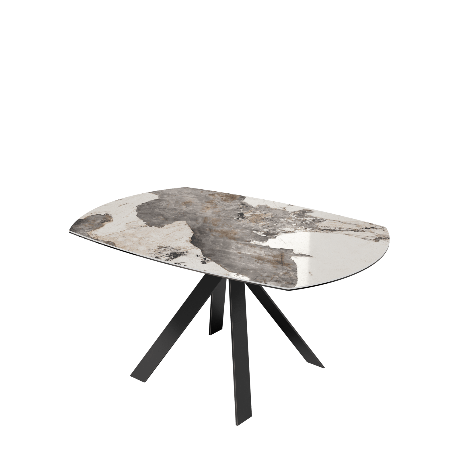 Contemporary ceramic extending dining table with metal base.