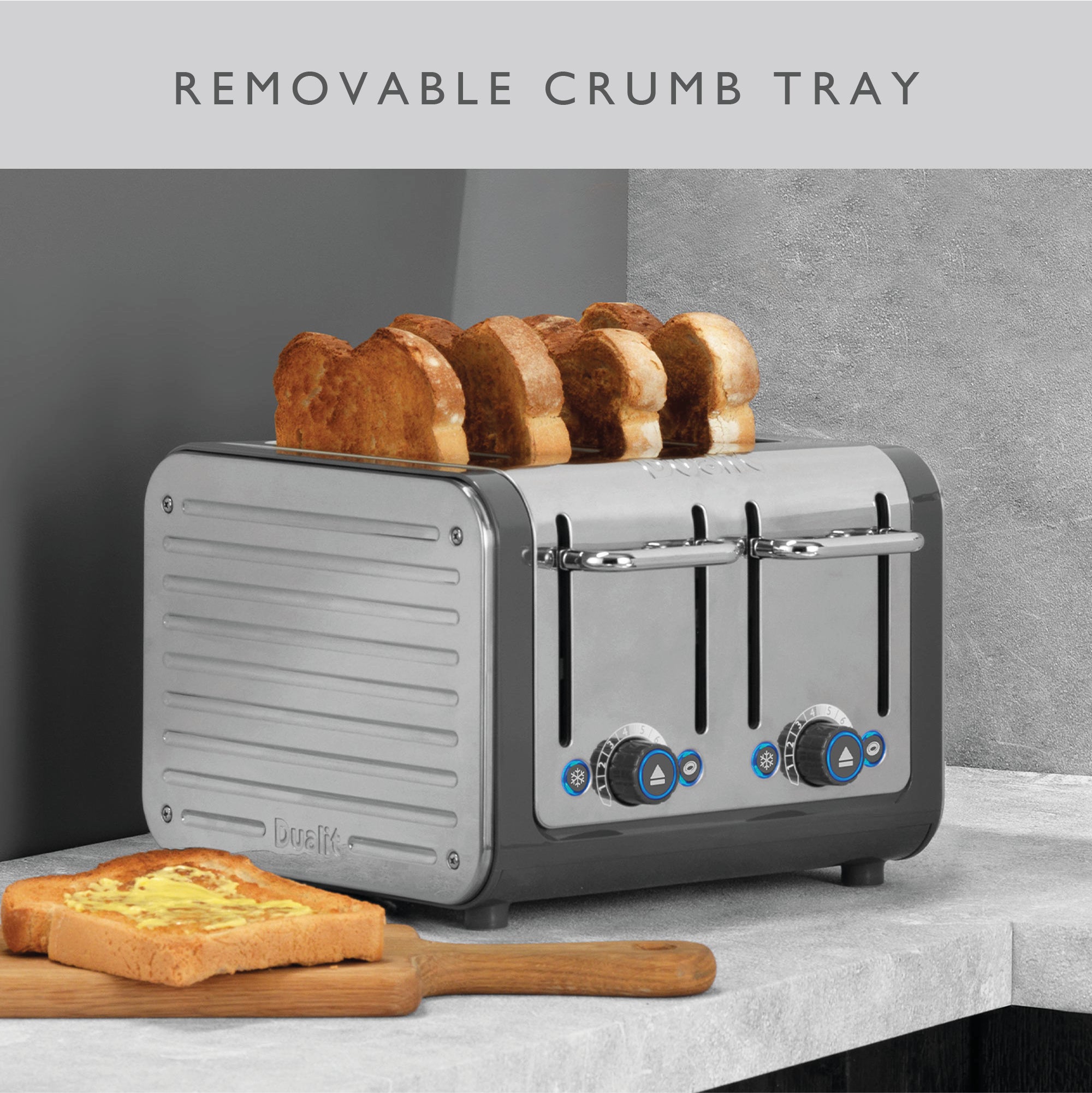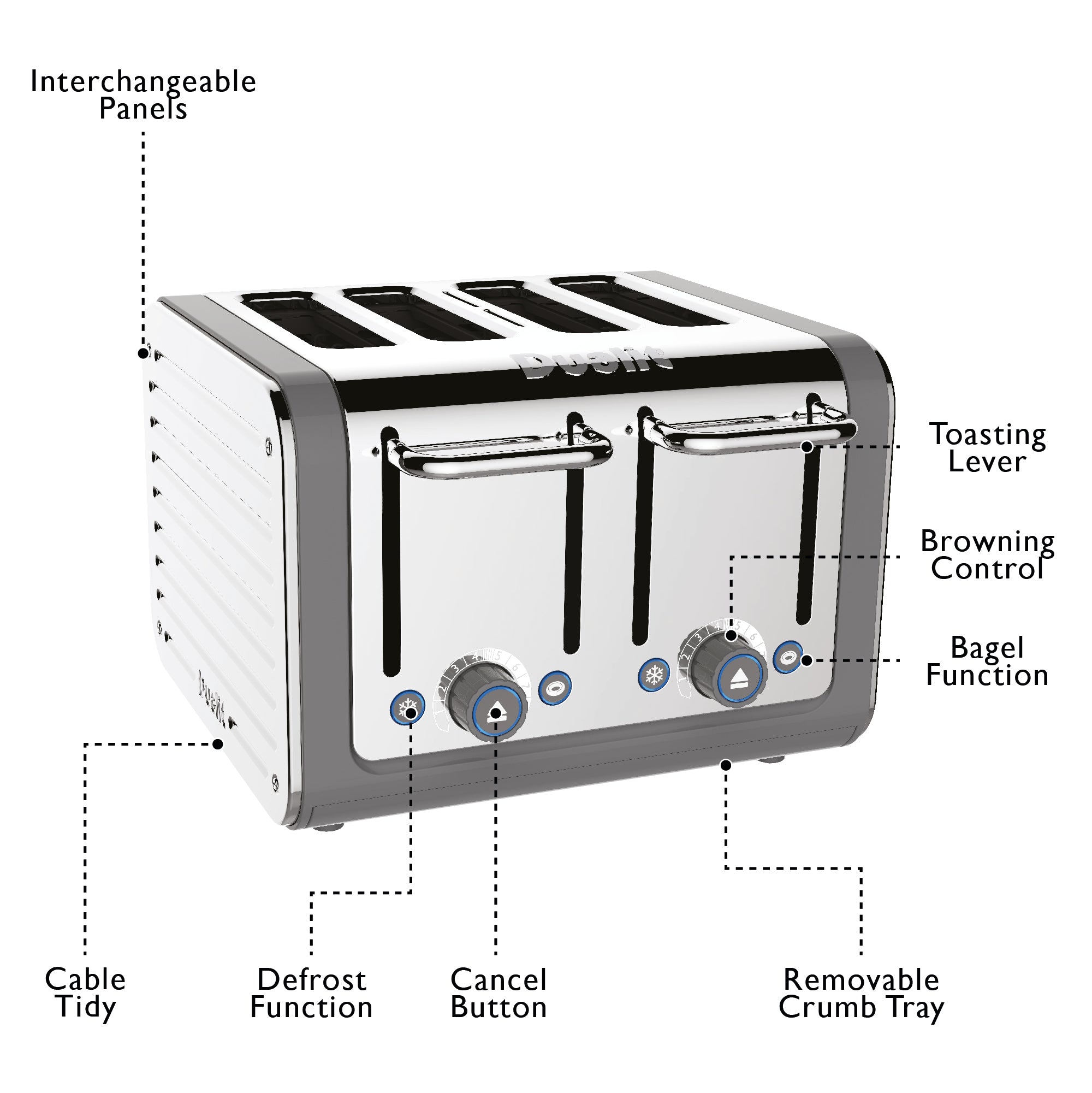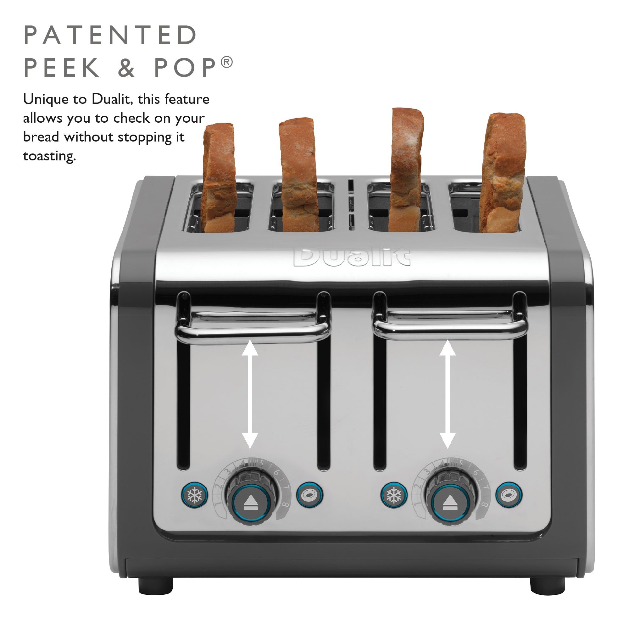 Dualit's Architect Toasters combine ergonomics and aesthetics to create a modern and practical design. The Architect Toaster features patented technology, extra wide 36mm slots and easy to use controls. The bagel setting allows you to toast one side whilst warming the other and the defrost setting is ideal for toasting bread straight from the freezer. This toaster also features Dualit's Perfect Toast Technology which calculates the temperature of the toaster and its surroundings, adjusting the cycle to make sure your toast is just how you like it, every time as well as the Patented Peek & Pop which lets you lift the bread with the eject lever to check how toasted it is, without interrupting the toasting cycle and giving a greater browning control.