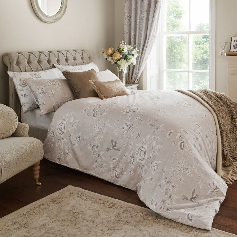 Laura Ashley Embroidered Pussy Willow Dove Grey Duvet