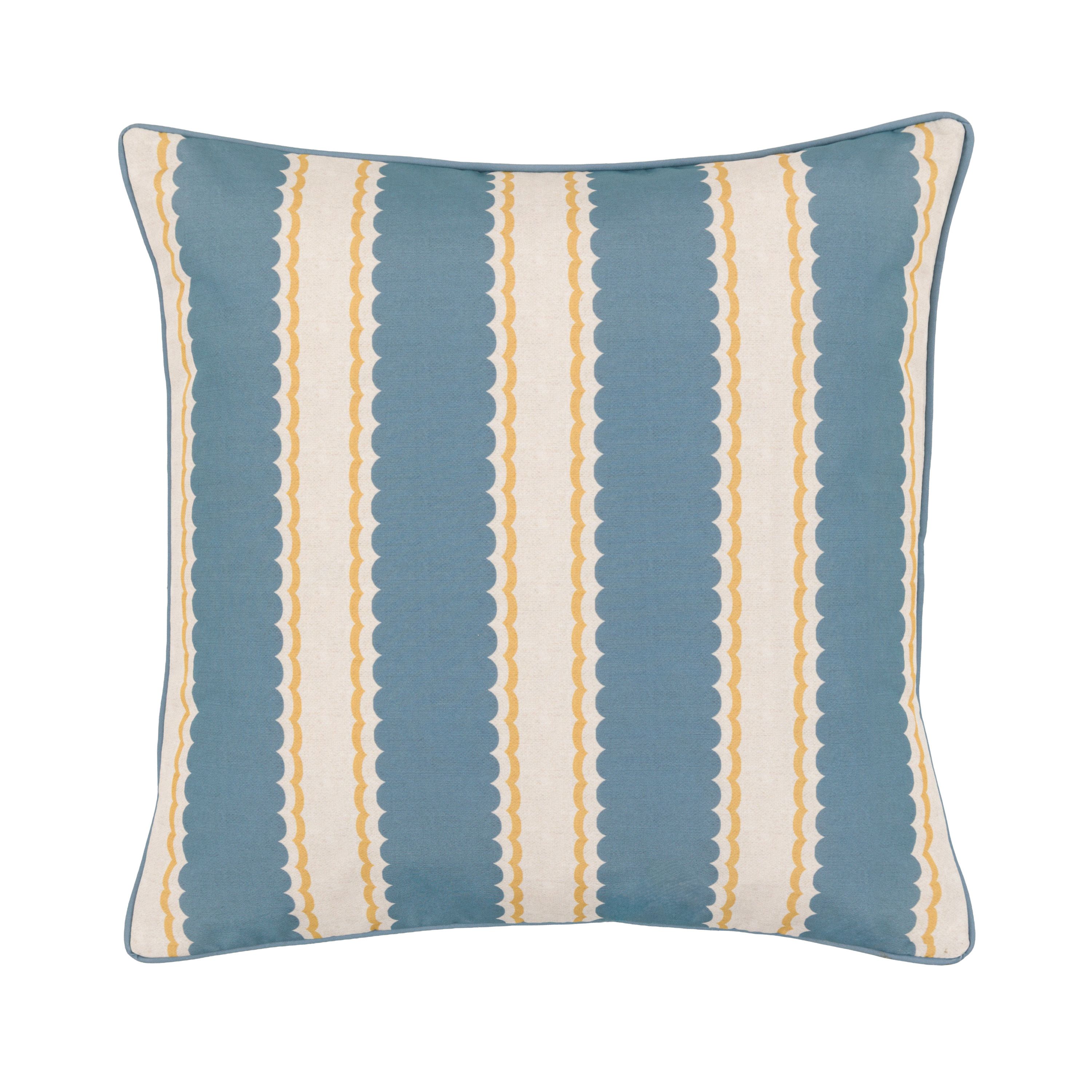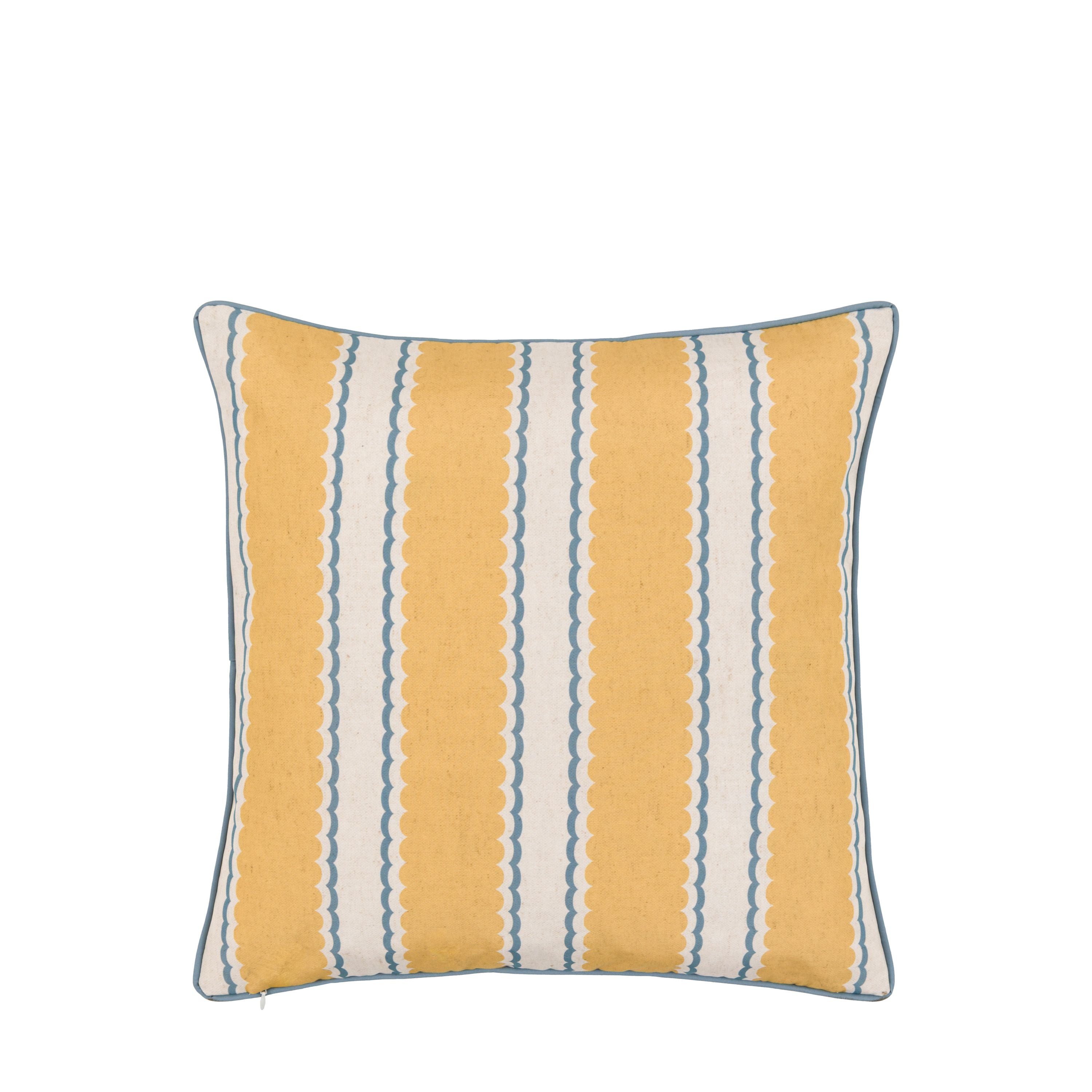 Add comfort to your space, inside or out, with this reversible showerproof cushion - featuring a blue stripe design on one side and ochre stripes on the reverse.