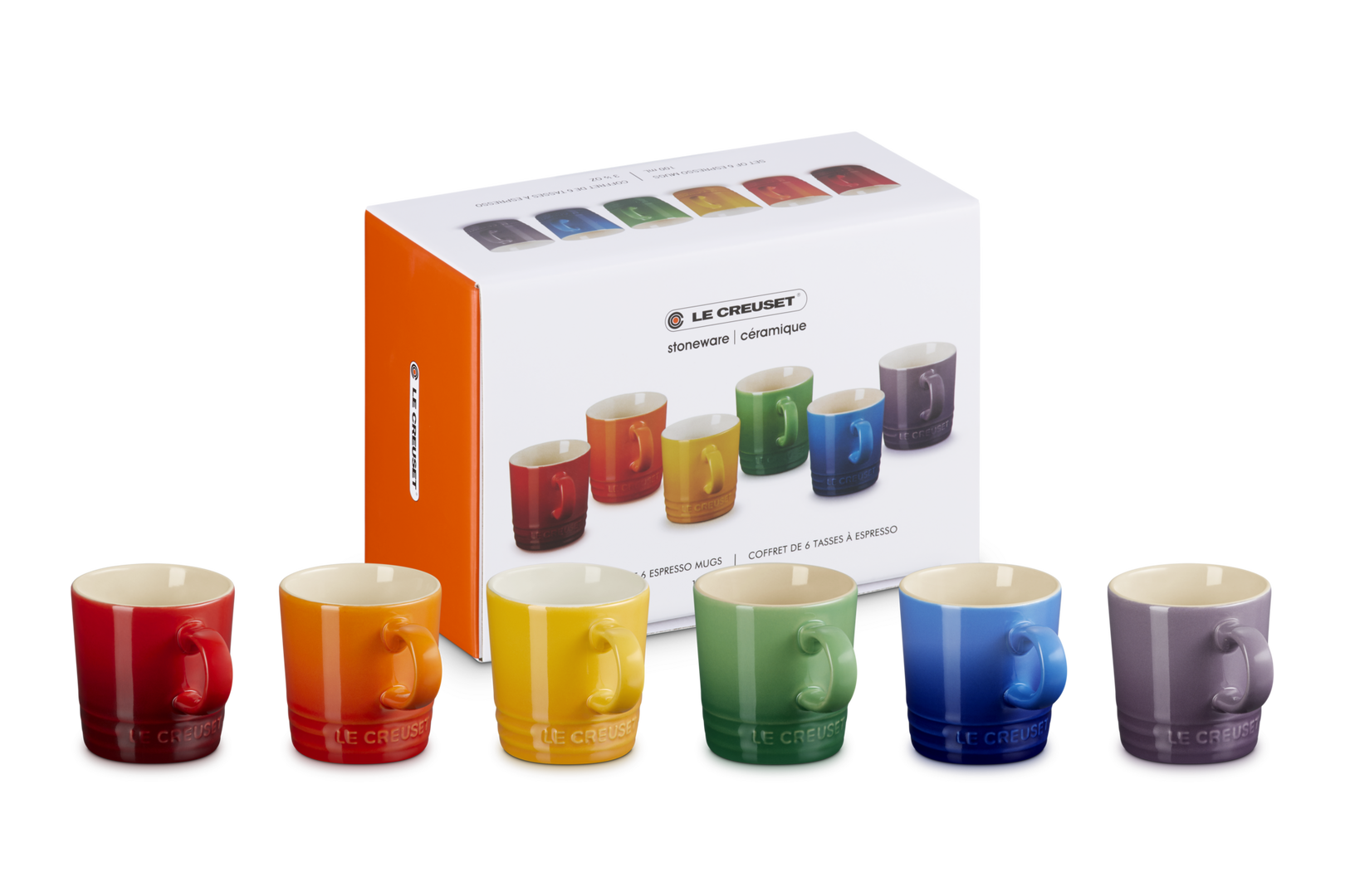 Le Creuset Stoneware Rainbow Set of 6 Espresso Mugs