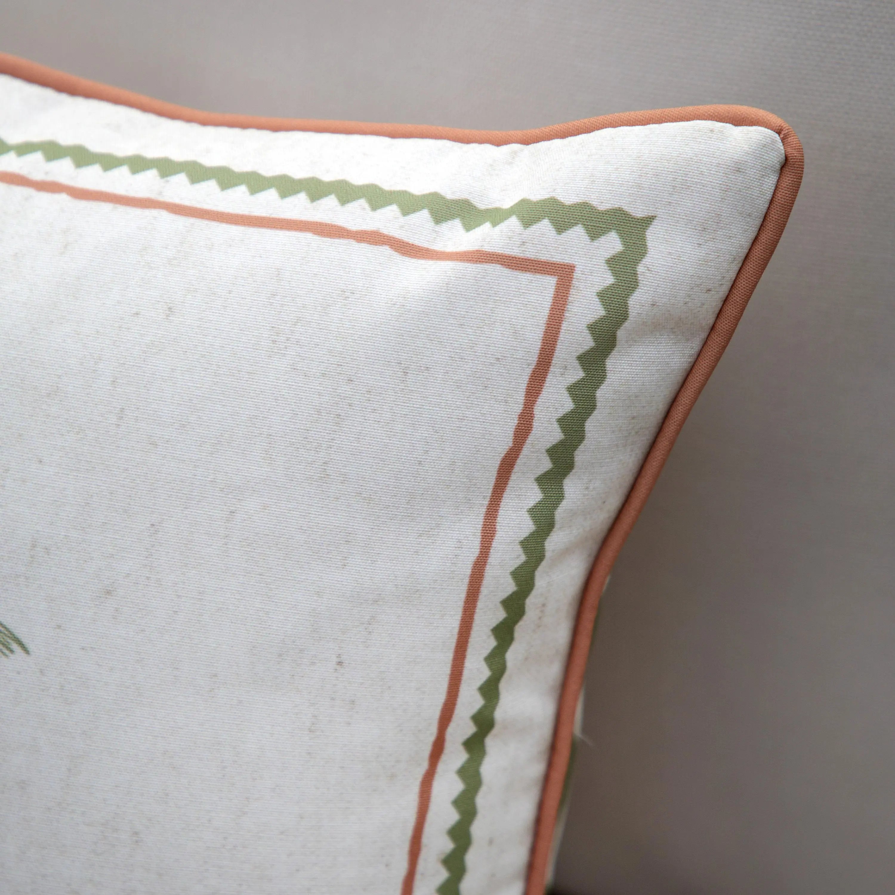 Add a tropical feeling to your indoor or outdoor space this summer. With a reversible design of palm trees & diamond stripe pattern and showerproof fabric, this cushion is a truly versatile addition.