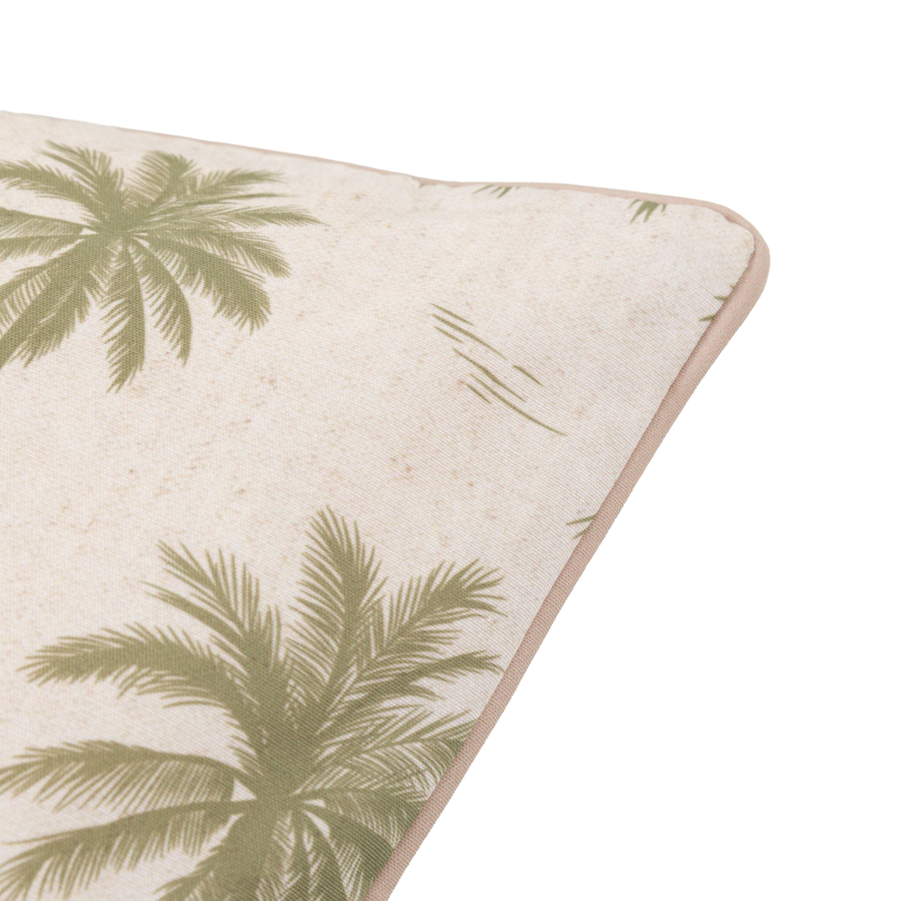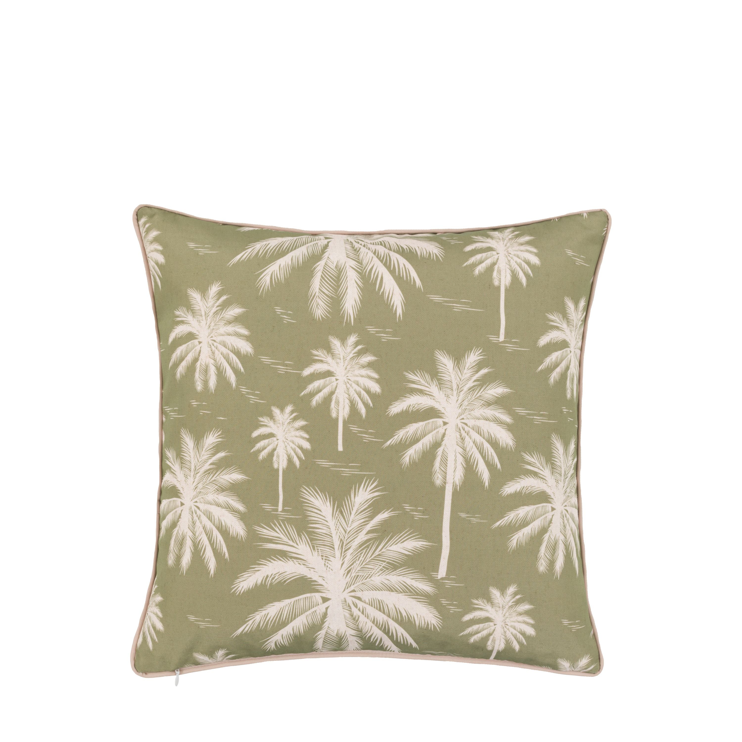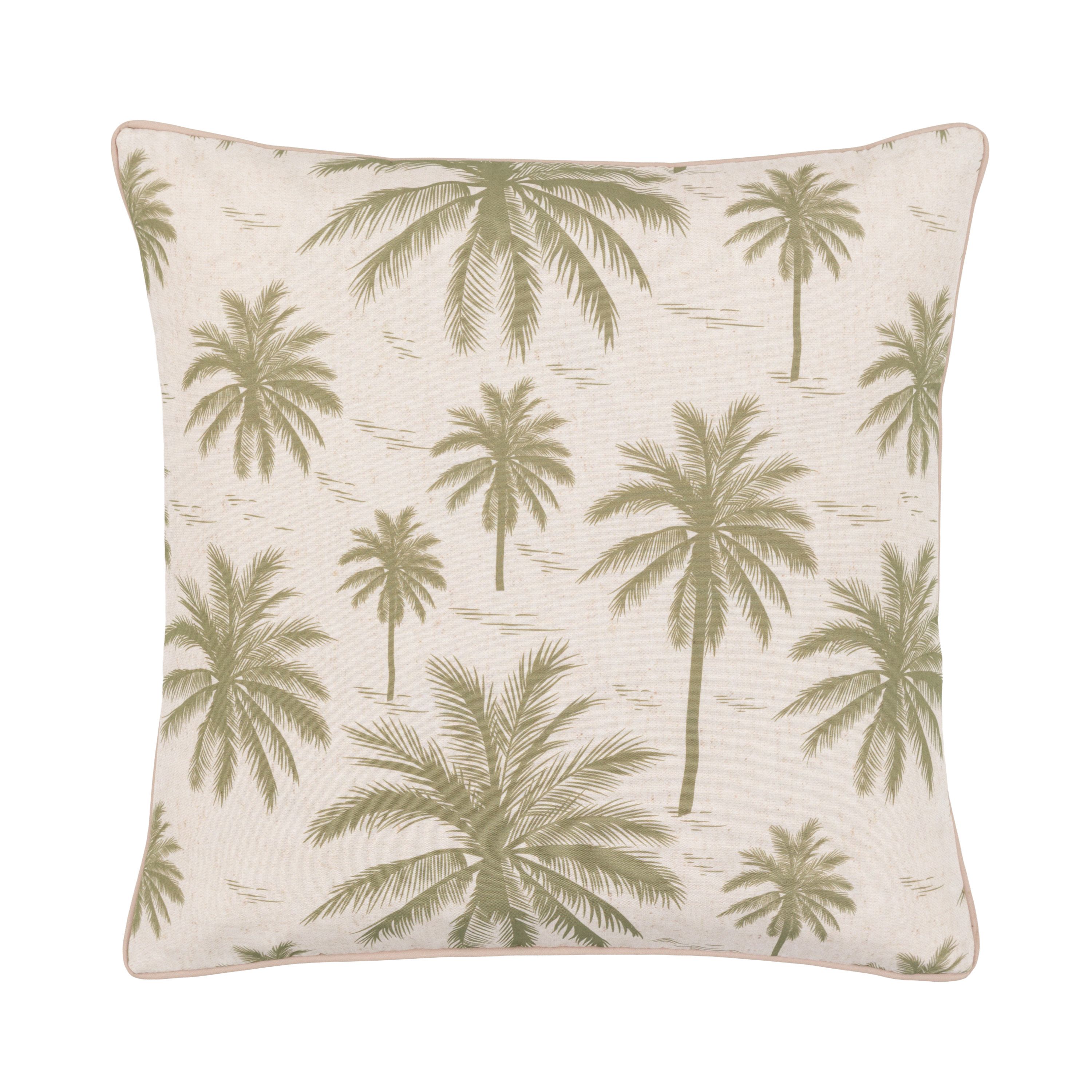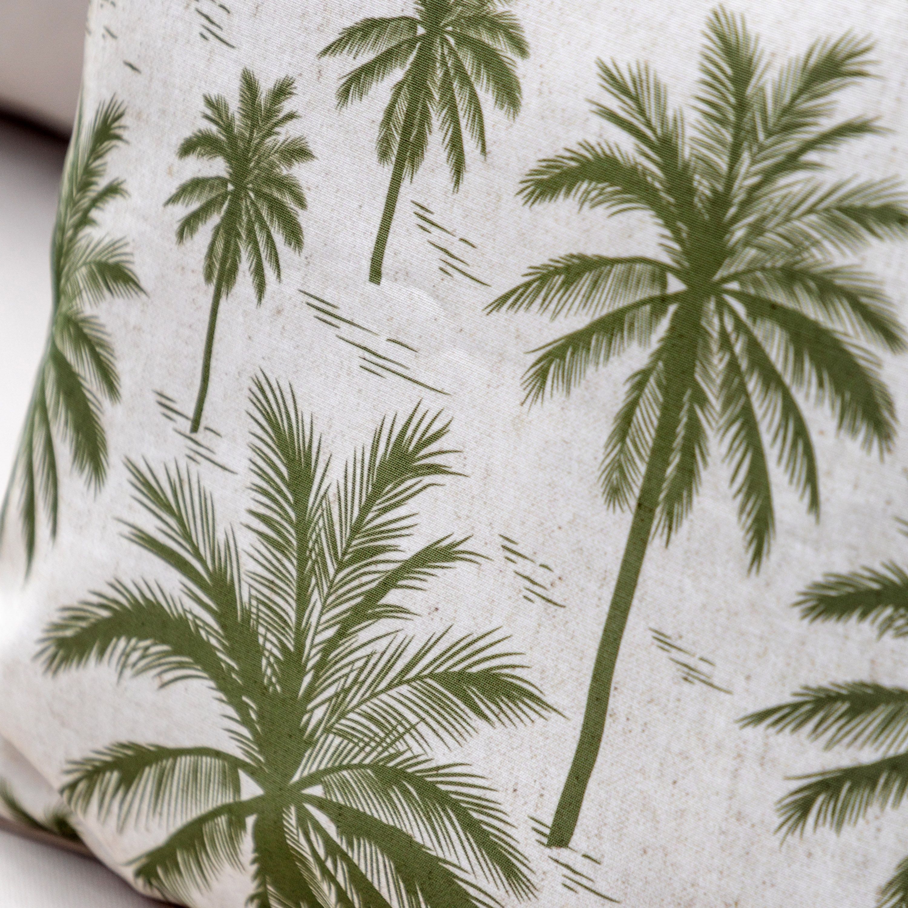 Inside or out, this reversible cushion will add comfort and a touch of tropical style. The white & olive green palm tree pattern is inverted on the reverse, and combined with the showerproof fabric this is a truly versatile cushion.