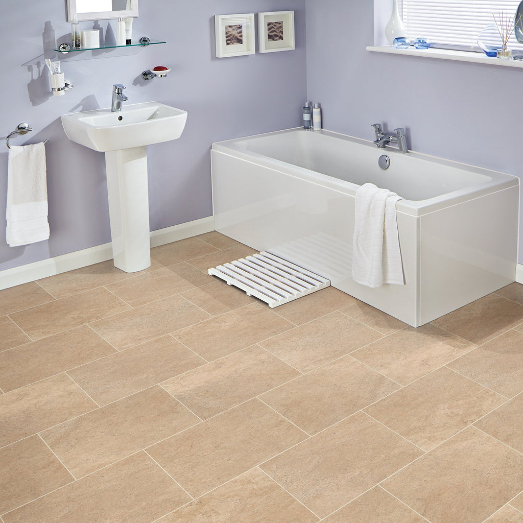 To achieve a timeless colonial look, go for the sandy beige tones of Bath Stone. With its attractive and highly realistic granular design, it looks great with white painted wood cabinets and French vintage style furnishings. What's more, these tiles are available in a trendy larger scale 18x12" format.