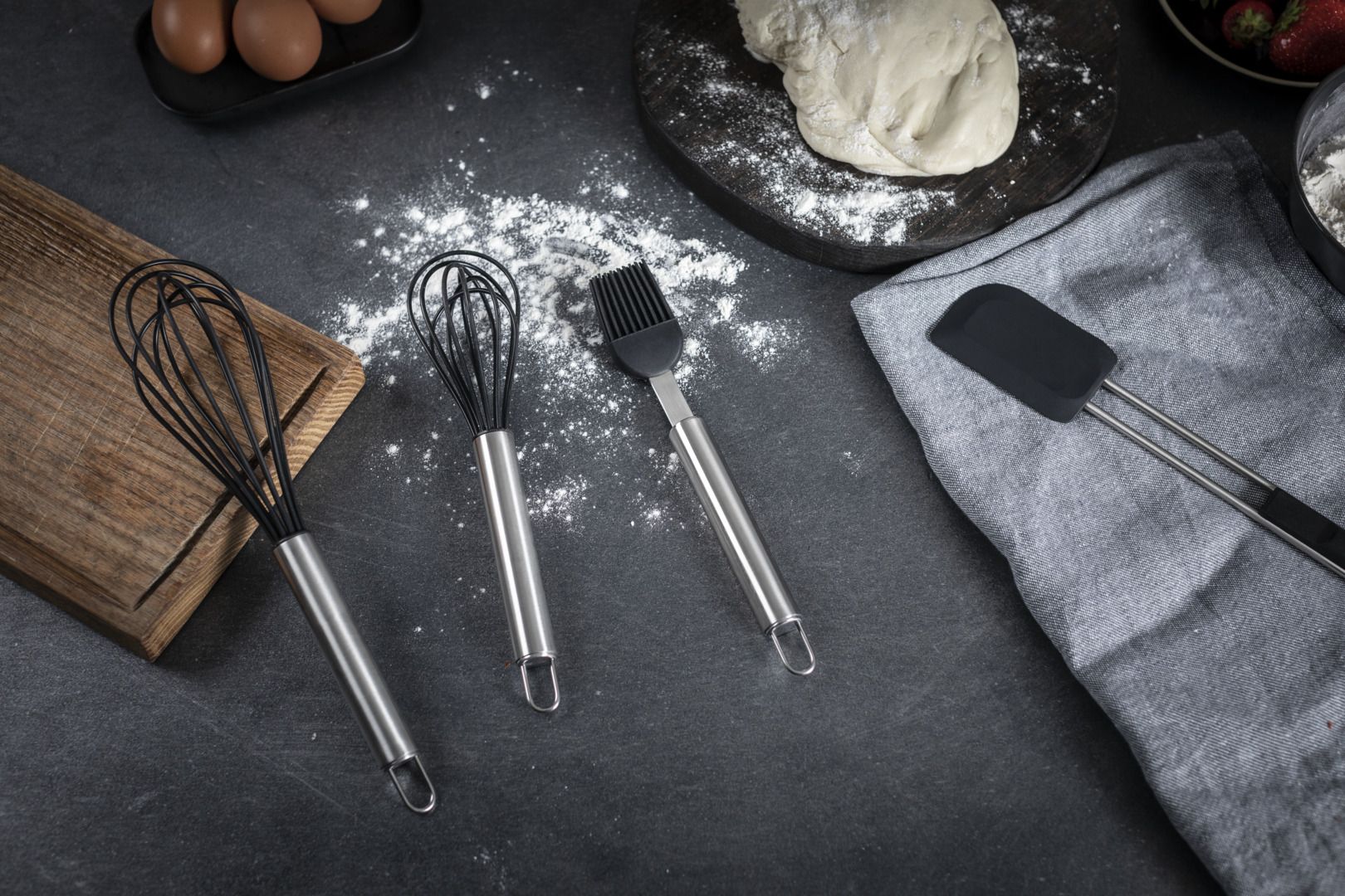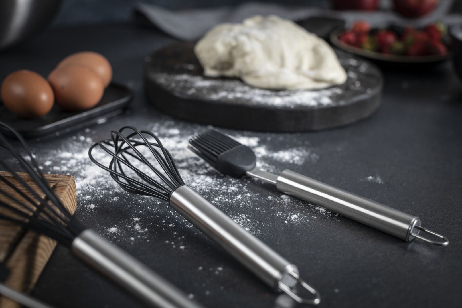 Classic kitchen tools from the ESSENTIAL collection return to the stage with contemporary designs to draw admiring gazes in every kitchen. Everyday tasks such as mixing, cutting, turning and serving are child’s play with this extensive range of handy kitchen tools. Featuring linear designs, the handles are delightfully comfortable to hold. The kitchen tools are easy to clean thanks to their high-precision, waterproof craftsmanship – whether by hand or in the dishwasher. Last but not least, each utensil incorporates an eyelet so you can hang it close to where you use it most.