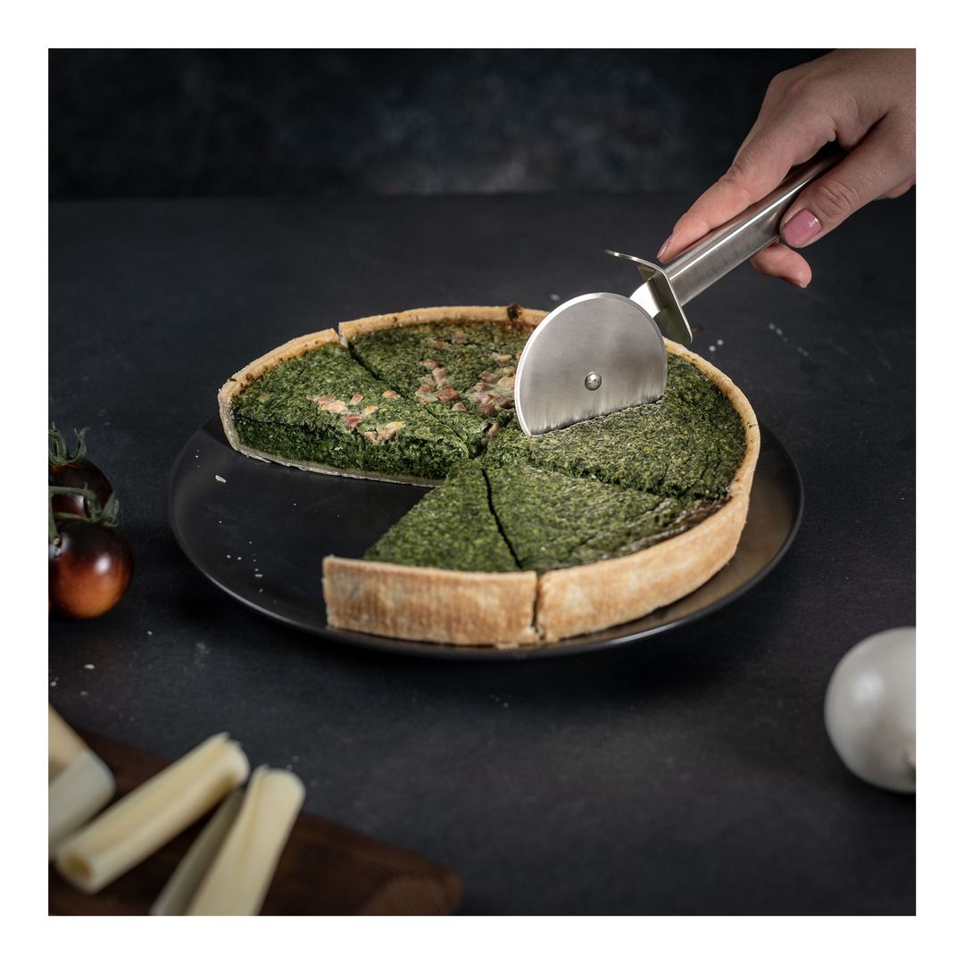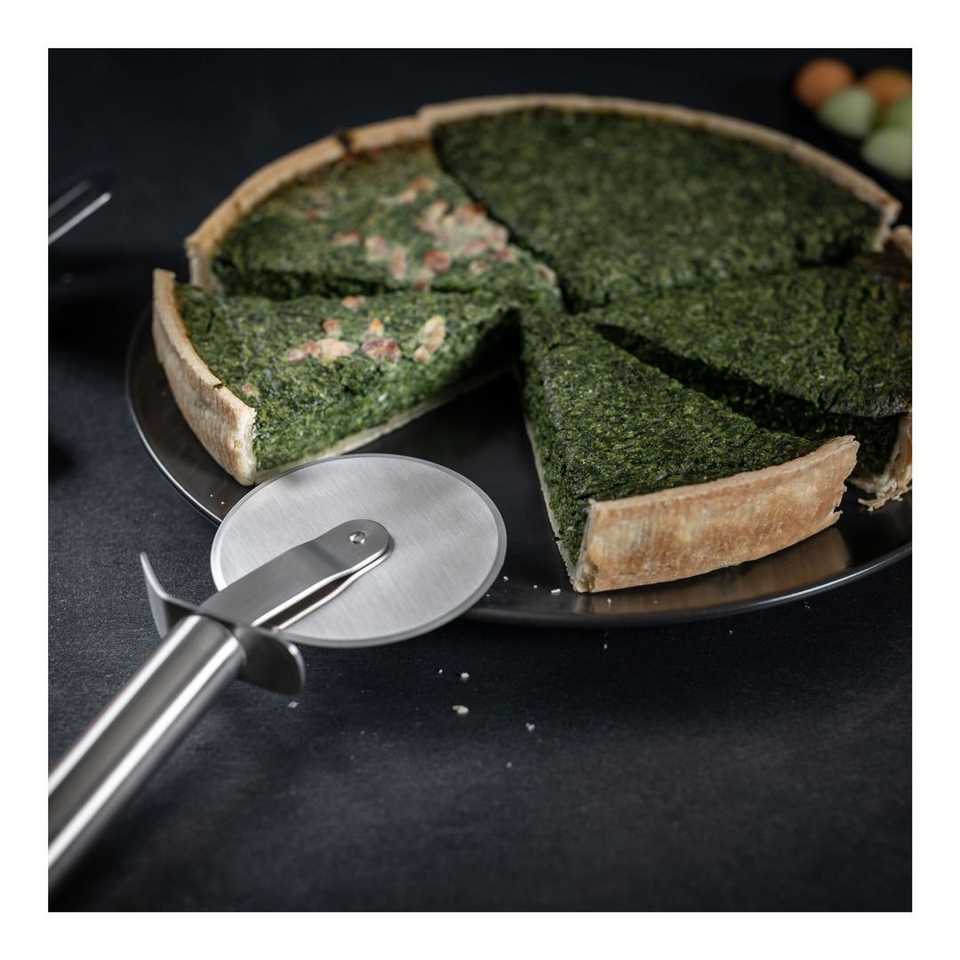 Use the pizza cutter from Kuhn Rikon’s stylish Essential range to slice your favourite pizza quickly and effortlessly. It’s also ideal for cutting up freshly rolled pasta or dividing up quiches or traybakes.