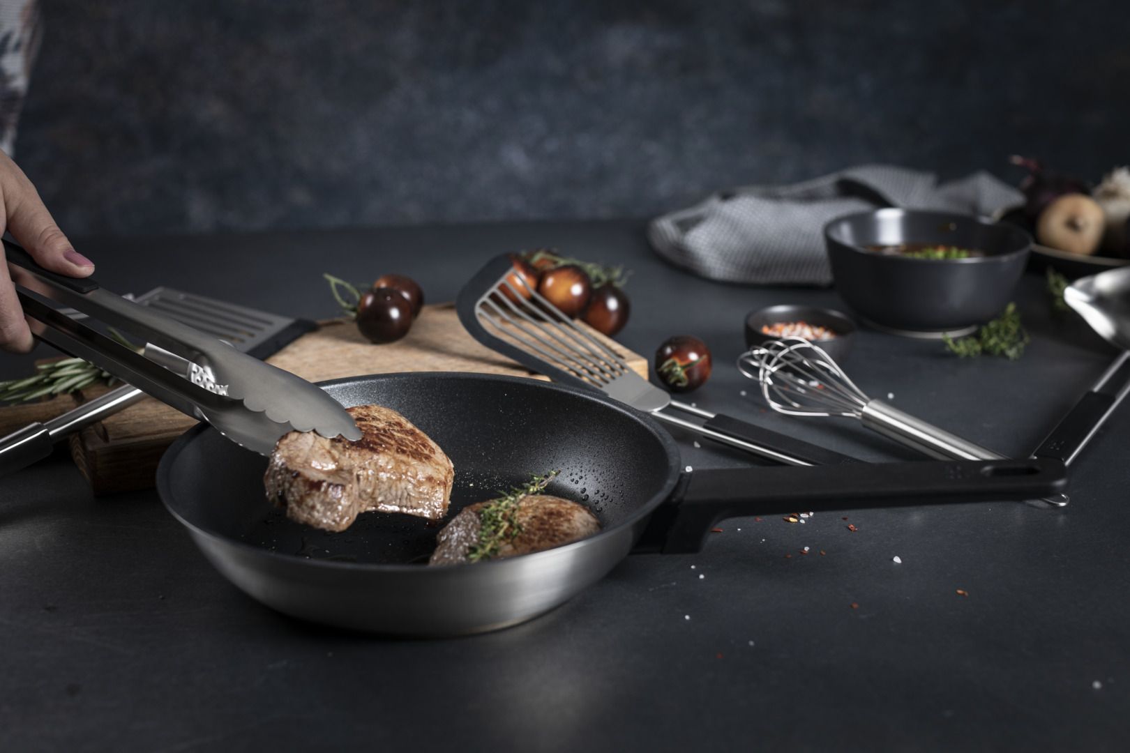 Classic kitchen tools from the ESSENTIAL collection return to the stage with contemporary designs to draw admiring gazes in every kitchen. Everyday tasks such as mixing, cutting, turning and serving are child’s play with this extensive range of handy kitchen tools. Featuring linear designs, the handles are delightfully comfortable to hold. The kitchen tools are easy to clean thanks to their high-precision, waterproof craftsmanship – whether by hand or in the dishwasher. Last but not least, each utensil incorporates an eyelet so you can hang it close to where you use it most.