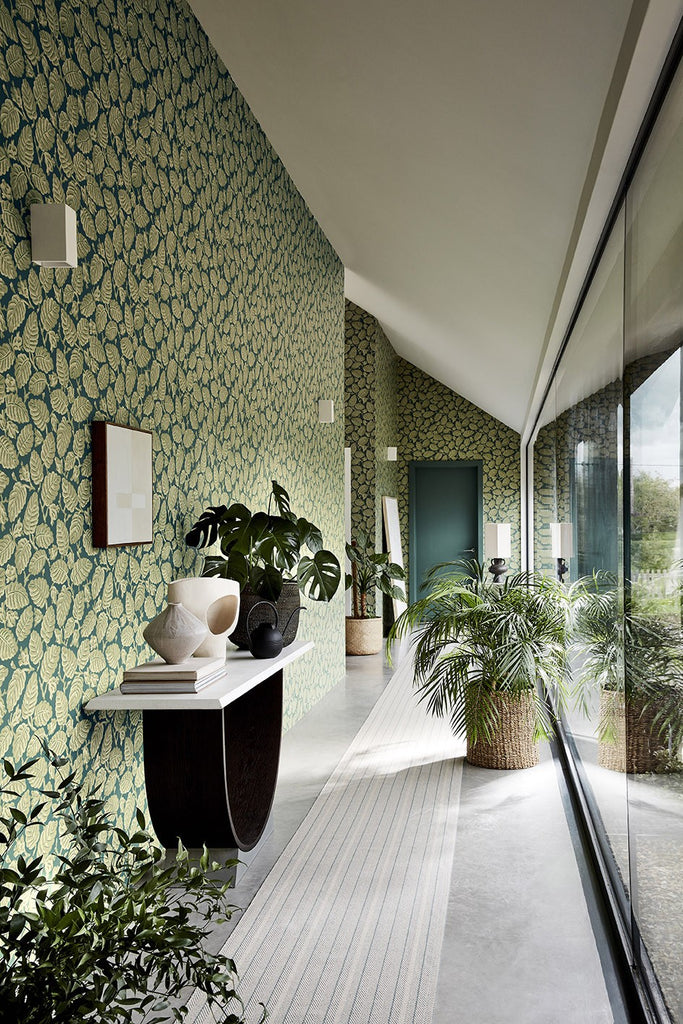 This authentic, late Georgian design was first uncovered at Oxburgh Hall in Norfolk. Originally used within a brightly-coloured, flocked, floral border, the leaf and nut element was block-printed in a rather more subdued grey colourway.