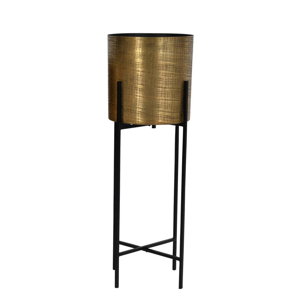 The Clyde etched brass antique planter set helps highlight your houseplants. Stood atop a sleek black frame, the set offers two planters made with antique brass, a soft and warm shade with an appealing textured finish. For indoor use only and also available in black.