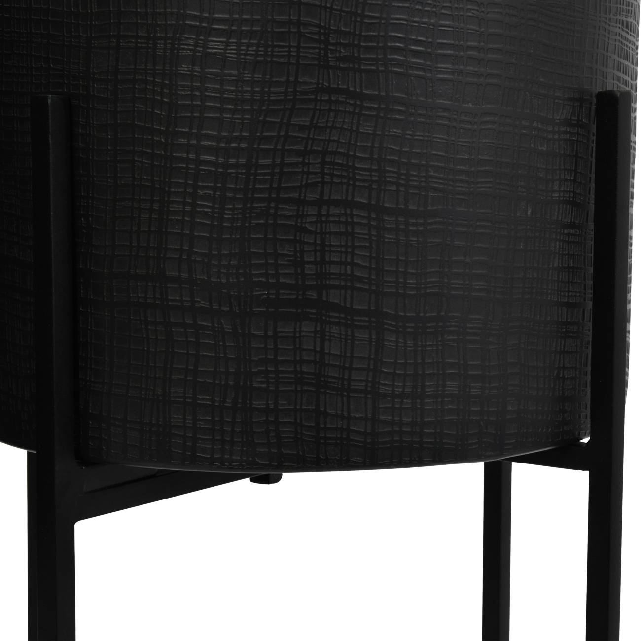 With the sleek and stylish black antique textured finish, this Clyde planter set is perfect for modern homes that prize more contemporary styles and the timelessness of monochrome shades. Each planter comes with powder coated black stand. Also available in antique brass for a more ornate aesthetic.