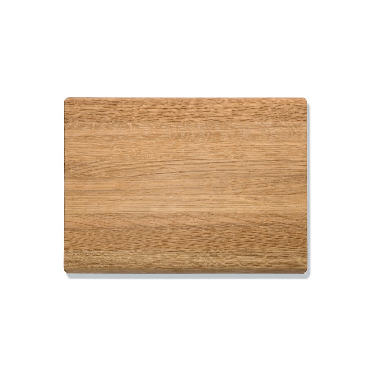 A 30cm rectangular wooden edge grain chopping board with natural grains which protect kitchen knives whilst preparing food. Made from solid oak and features a food safe oiled finish.