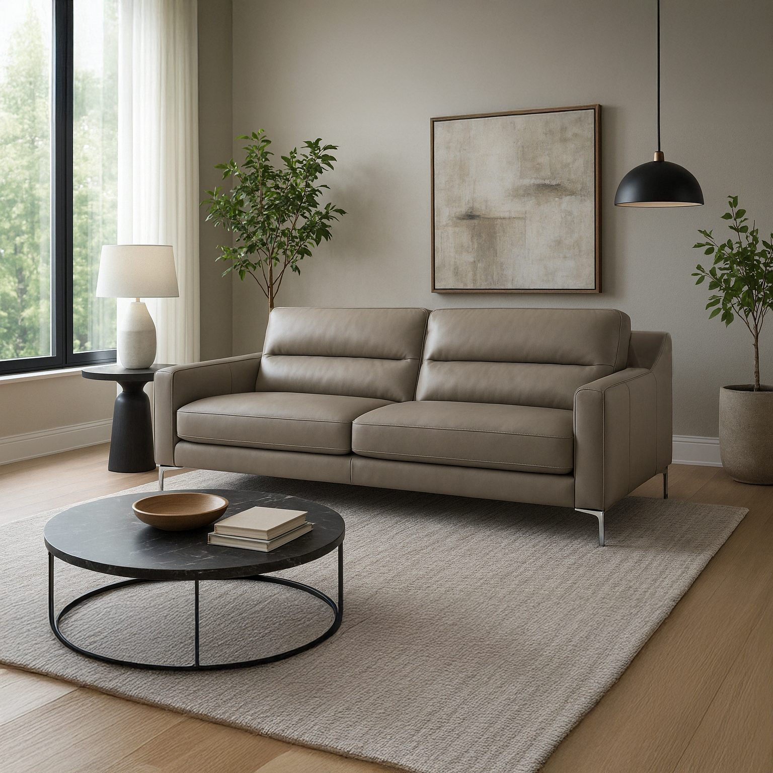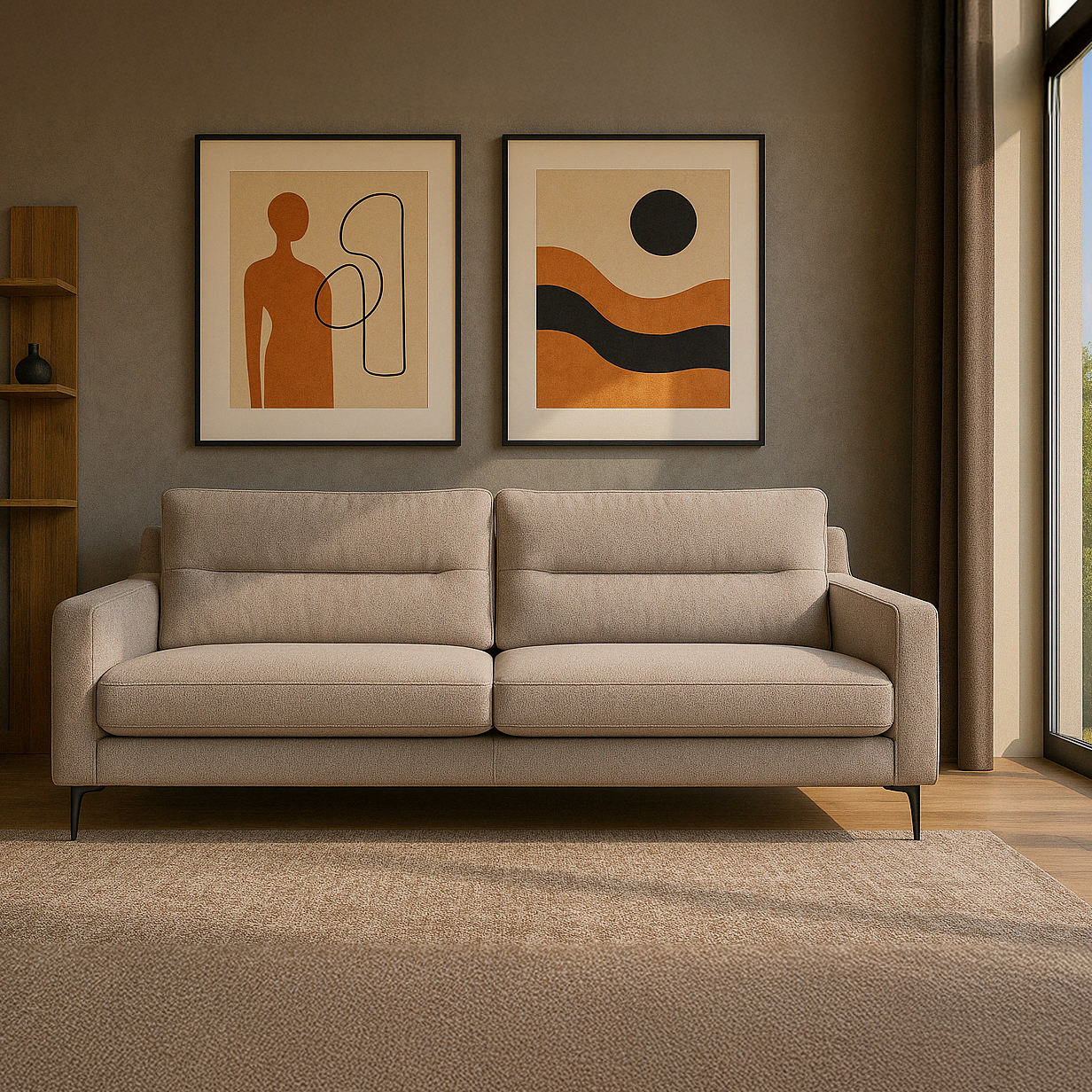 The Alessandro sofa range offers a modern and elegant design, blending with sleek aesthetics. The range features a structured silhouette with clean lines and deep seat cushions for optimal comfort. The padded backrest has subtle contours that enhance support for the upper back. This range would be ideal for contemporary homes looking for a balance between comfort, modern aesthetics, and durability.