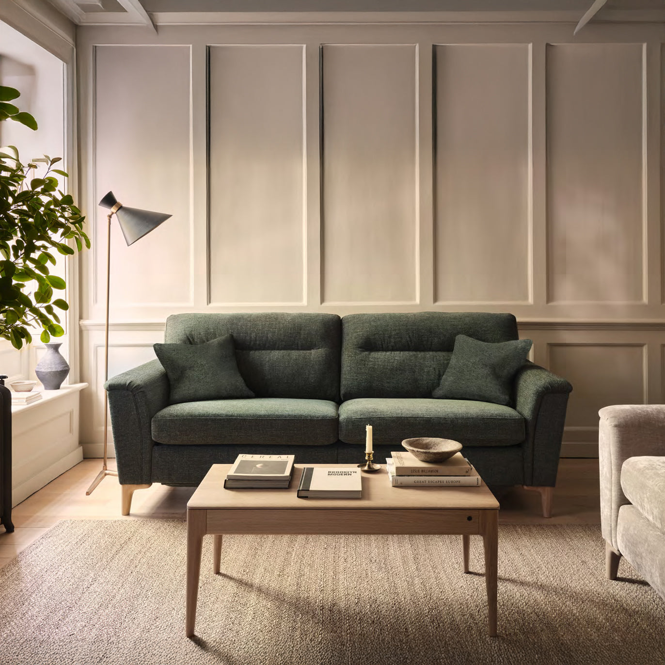 Our Sandford Sofa range has scrolled arms, curved legs, and deep sumptuous cushions. You can choose from a static or motion option with a smooth footrest mechanism. You can easily put your feet up with the added benefit that the sofa stays close to the wall so you don’t need to compromise on space. Cleverly, this option also comes with a USB port in the arm of the sofa.