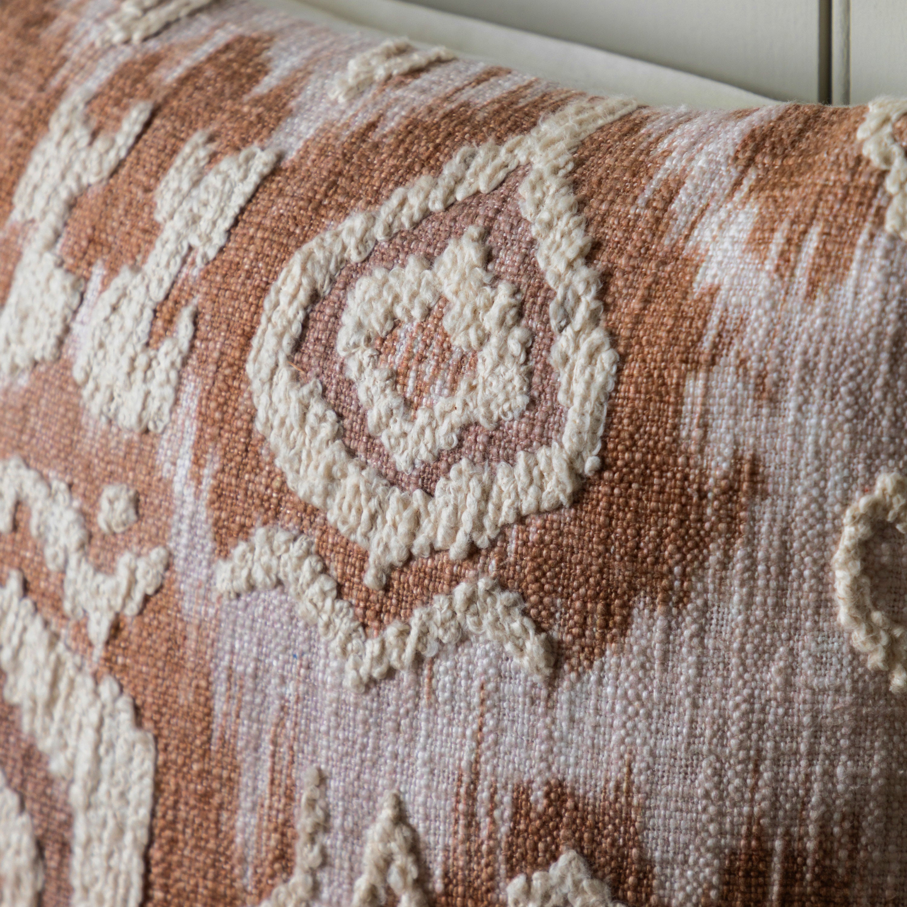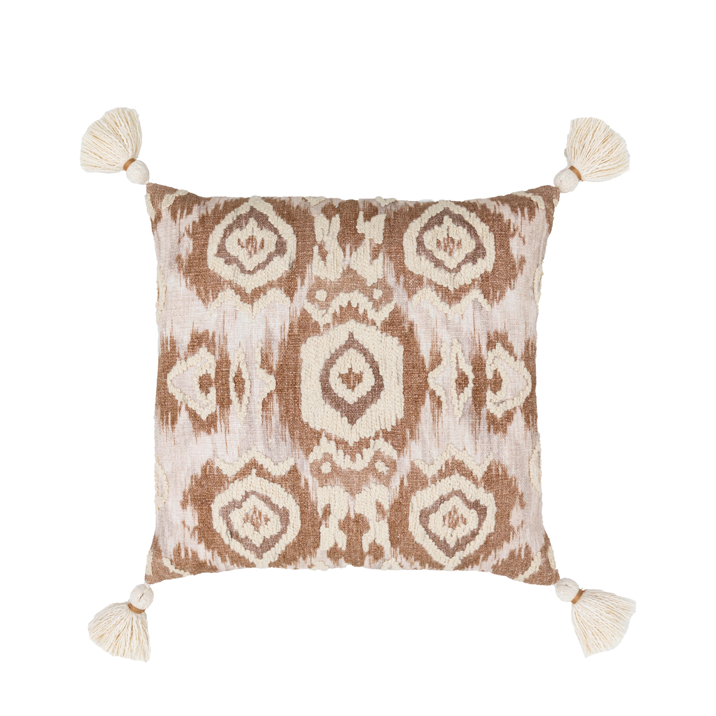 A beautiful contemporary ikat style design, with soft tassels, forming part of our collection of globally inspired, hand crafted Indian textiles.