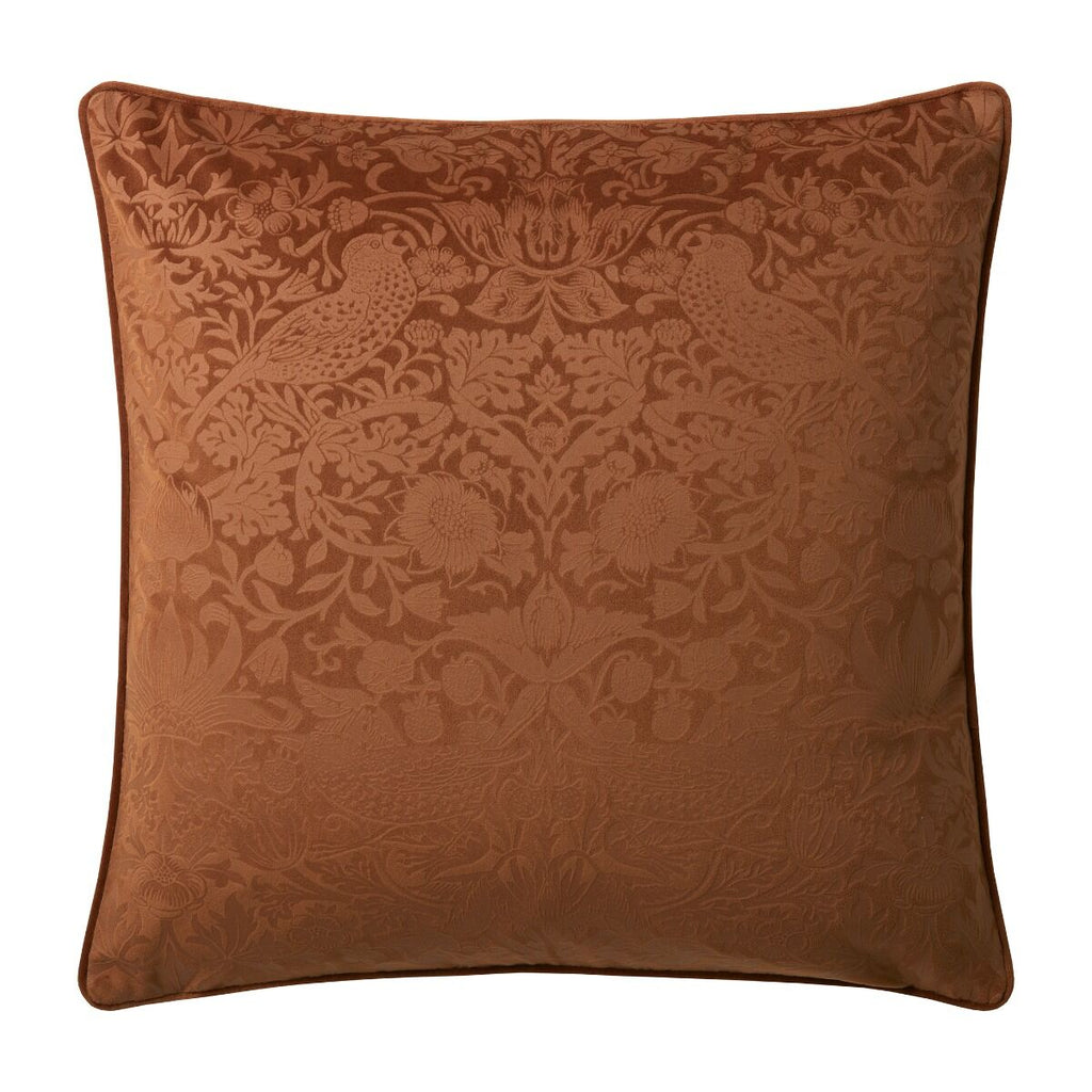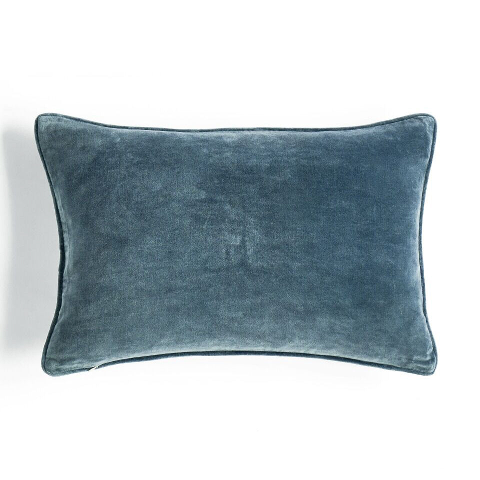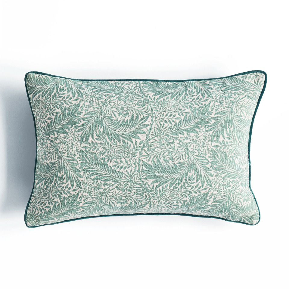 Roses, leafy branches and distinctive dolphin-shaped larkspur flowers decorate this beautiful 100% cotton cushion. Designed by William Morris in 1872, the Larkspur pattern captures Morris’ admiration of native flowers of the English countryside; Morris grew a variety of roses in the front garden of his Kelmscott Manor home. Printed onto a luxuriously soft brushed cotton base in a fresh pale blue shade, this sophisticated cushion is finished with a complimentary coloured cotton velvet reverse and smart piped edging.