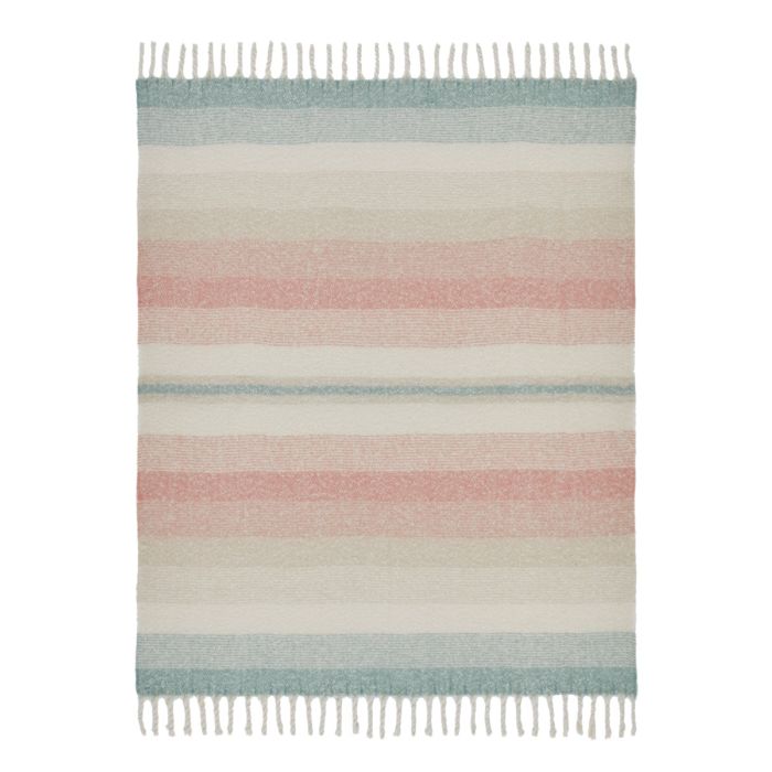 This beautifully soft throw, with subtle stripes of plaster pink, delicate cream and warm sage has a tasselled edge finish and is the perfect accessory for your home.
